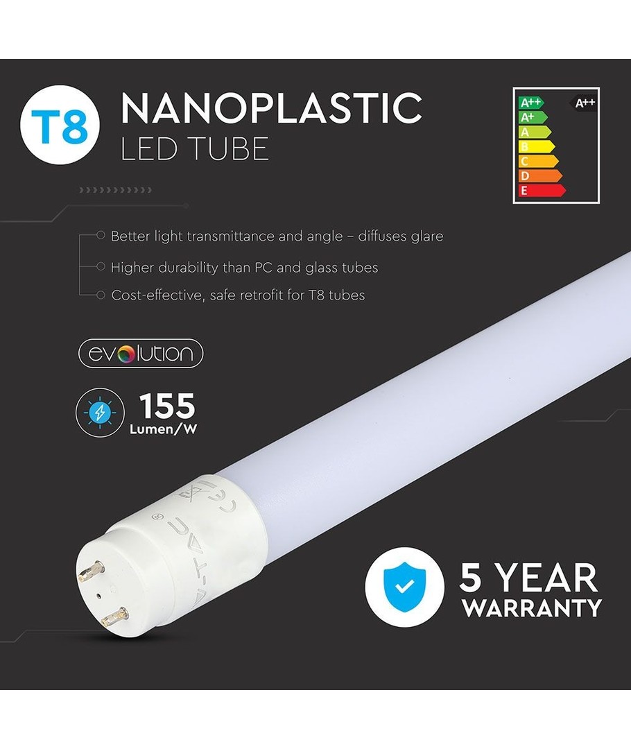 Deze 12W LED-buis uit de V-Tac Evolution-serie is ontworpen om traditionele TL-buizen te vervangen en energiebesparing te garanderen. Met een lichtsterkte van maar liefst 1920 lumen en een brede stralingshoek van 160 graden, zorgt u voor een gelijkmatige en effectieve lichtverdeling die aan uw behoeften voldoet.