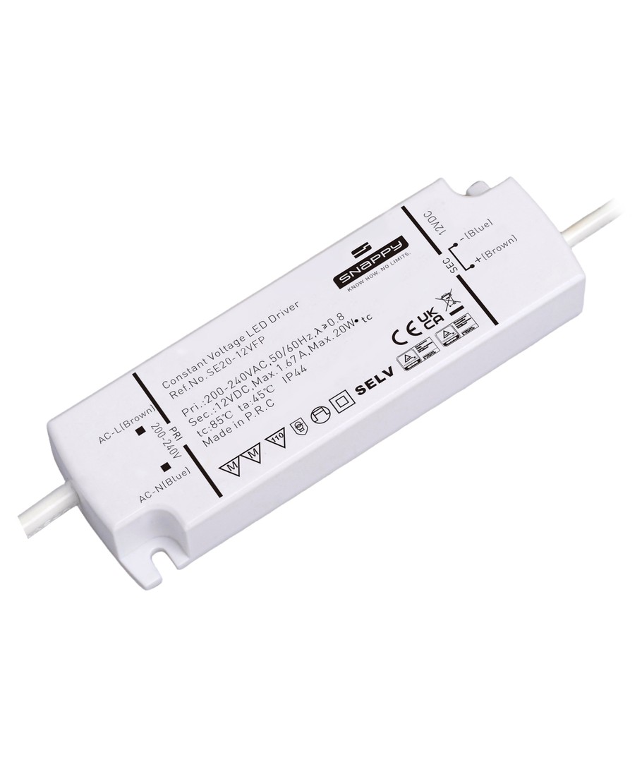 Maak uw LED-verlichting efficiënter en veiliger met de Snappy 20W voeding, die constante prestaties en een robuuste constructie biedt – een betrouwbare oplossing voor uw binnenverlichtingsbehoeften.