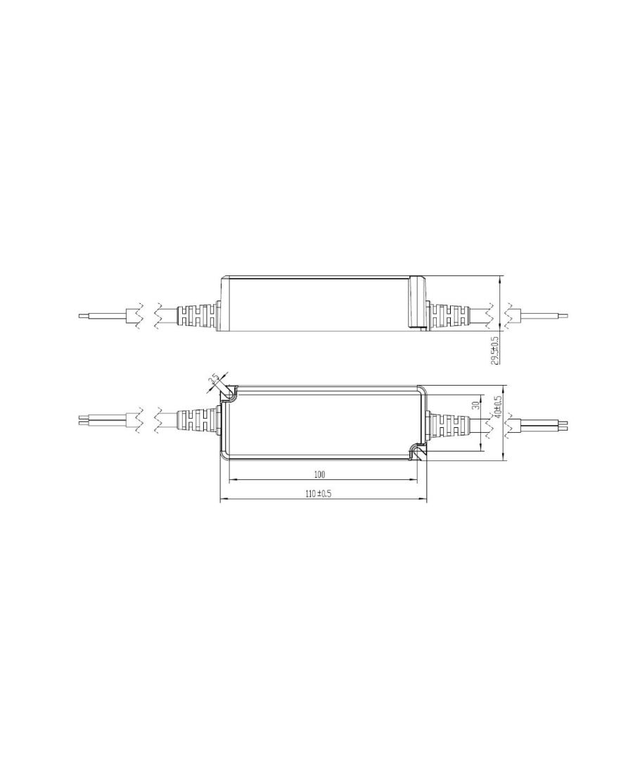 De stroomvoorziening wordt eenvoudig aangesloten op een 230V voeding. Met compacte afmetingen van 44 x 21 x 155 mm kan hij gemakkelijk worden geplaatst in verschillende installatiesituaties, waardoor het een flexibele oplossing is voor veel soorten verlichtingsprojecten.