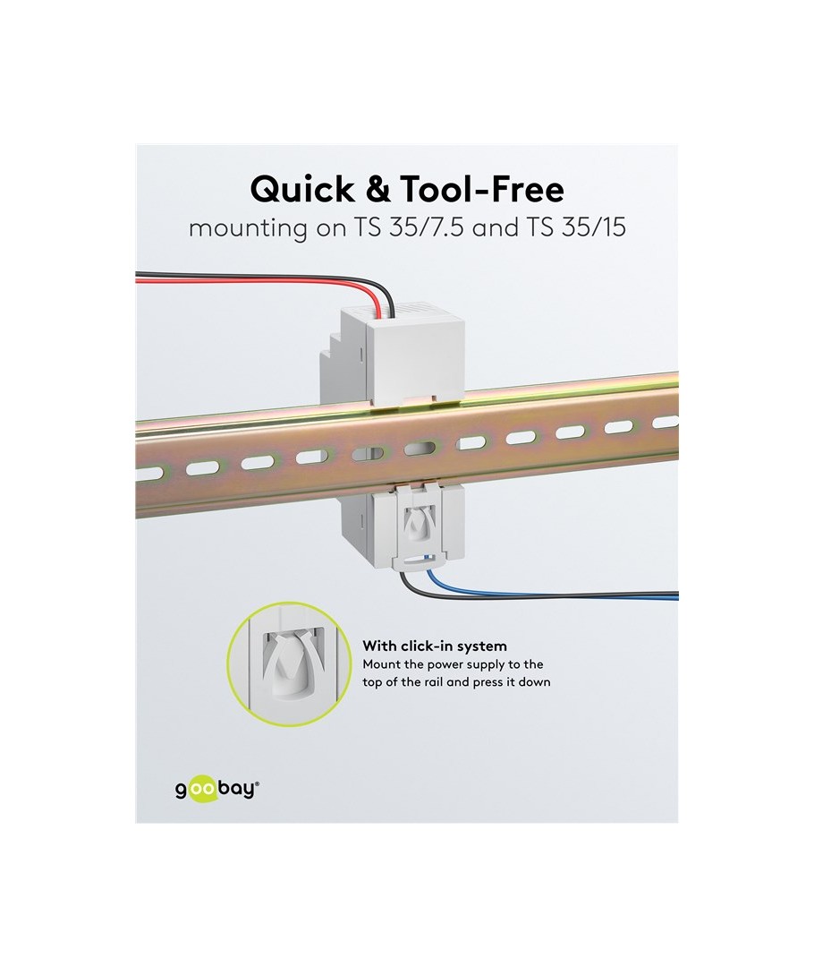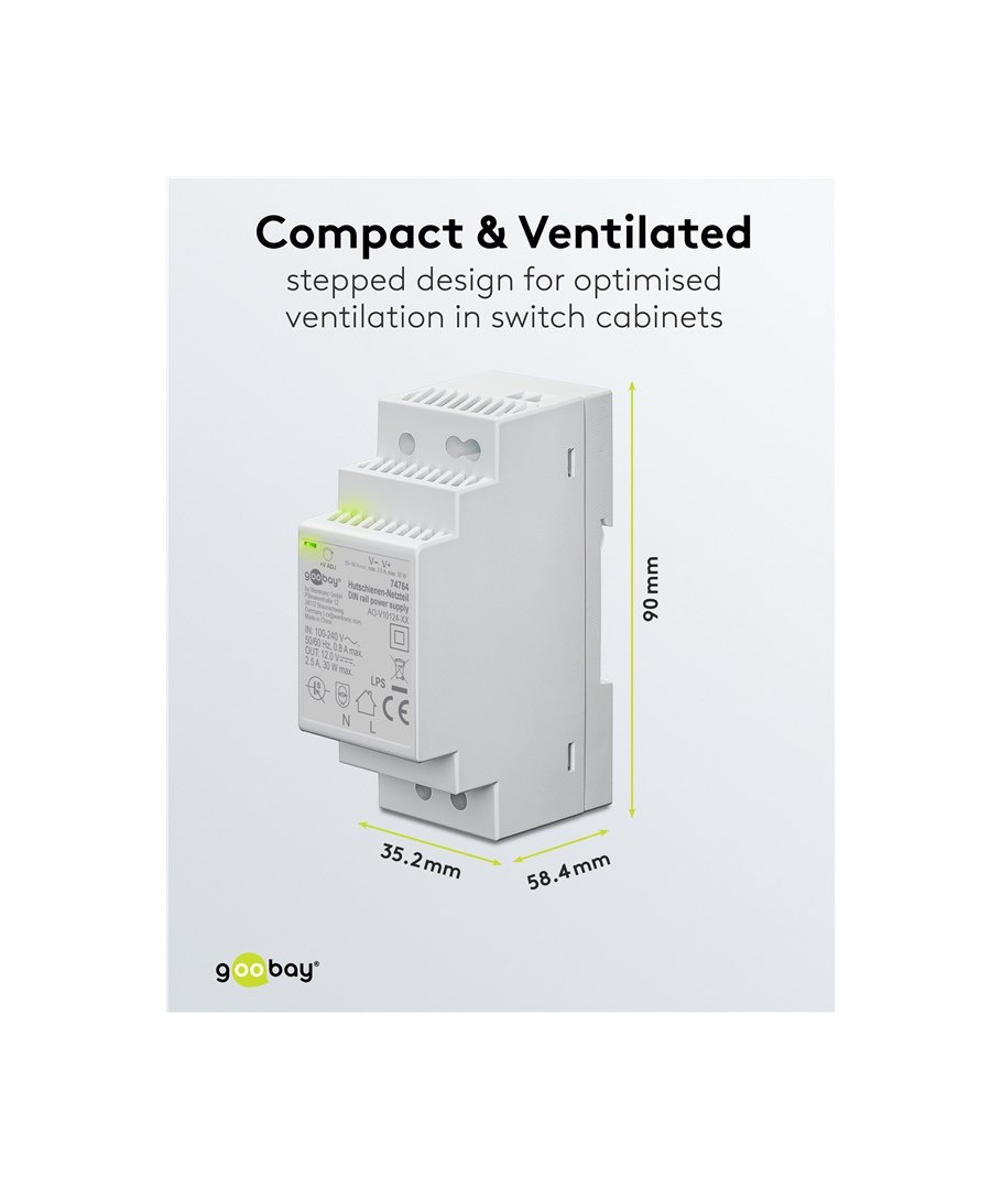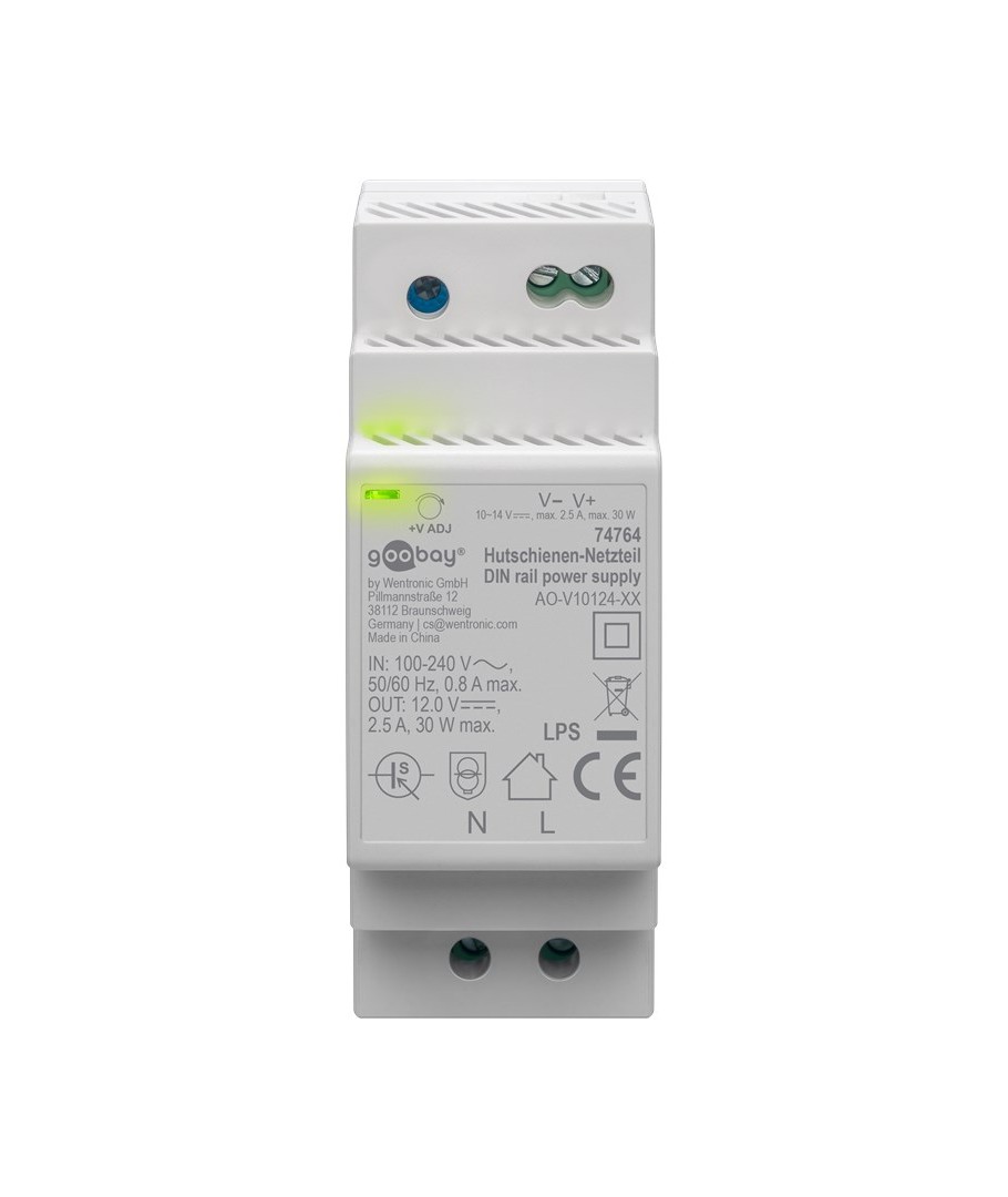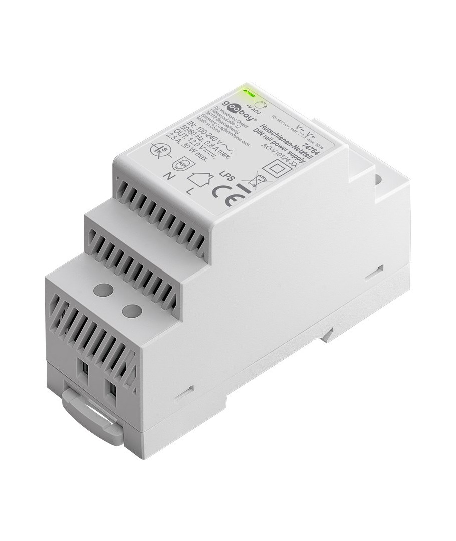 12V DC 2,5A voeding voor montage op DIN-rail.
