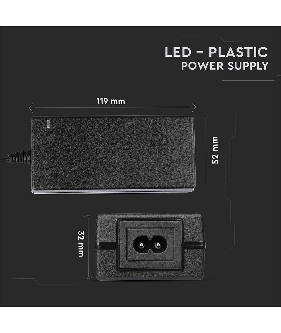 Deze voeding is compact van formaat met afmetingen van 120 x 33 x 55 mm. Het ruimtebesparende ontwerp maakt het eenvoudig om het apparaat te integreren in verschillende installatiesituaties, zonder concessies te doen aan de functionaliteit of efficiëntie van het product. De compacte afmeting zorgt ook voor eenvoudige installatie en flexibiliteit in plaatsing.