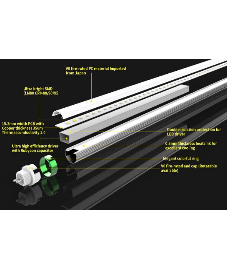Deze LED buis is uitgerust met componenten van de hoogste kwaliteit, wat zorgt voor een lange levensduur tot 50.000 uur. De professionele driver en de efficiënte koeling zorgen ervoor dat het product een betrouwbare werking en een lange levensduur biedt.