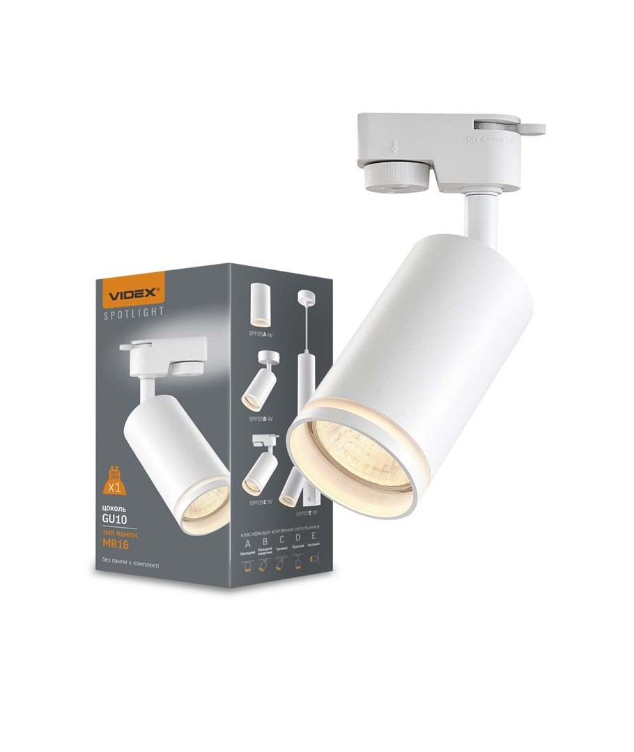 1-fase GU10 spanningsrailspot - Wit, zonder lichtbron, 1F2W Videx Uitklappen