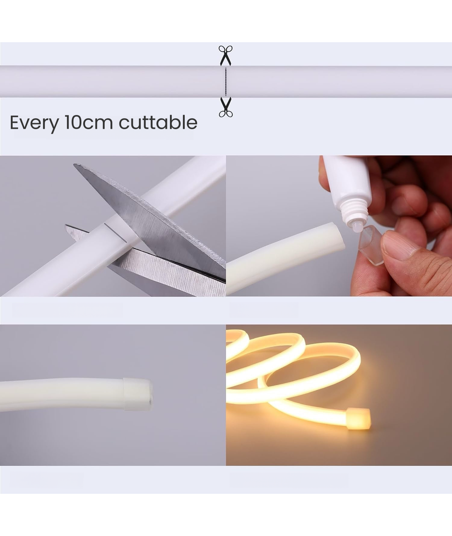 Hij is bijzonder praktisch dankzij de dimbare functie, zodat je de lichtsterkte kunt aanpassen aan je specifieke behoeften en de gewenste sfeer kunt creëren. Je kunt hem ook per 10 cm knippen, wat maatwerkoplossingen mogelijk maakt volgens jouw ontwerpvereisten.
