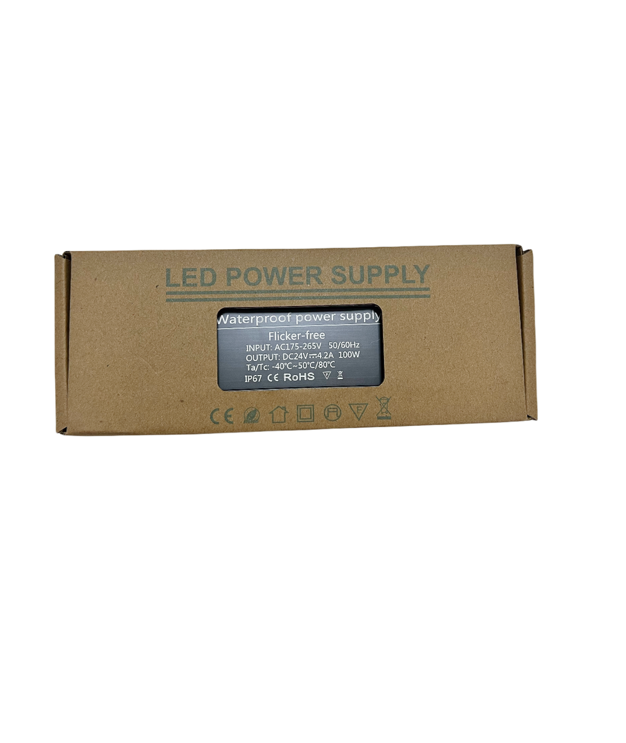 De nieuwe 100W voeding 24V DC - 4,1A levert betrouwbare stroom zonder flikkering en is perfect voor zowel binnen- als buitengebruik dankzij de IP67-certificering.