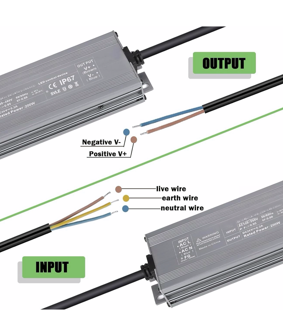 Met een IP67 waterdichte classificatie kan deze voeding zware weersomstandigheden weerstaan, waardoor hij geschikt is voor buiteninstallaties. Houd er echter rekening mee dat het apparaat niet is ontworpen om langdurig onder water te liggen.