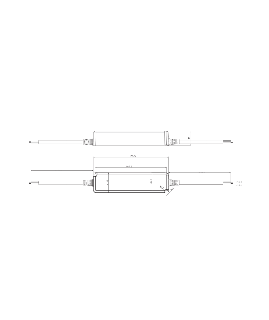 De stroomvoorziening wordt eenvoudig aangesloten op een 230V voeding. Met compacte afmetingen van 44 x 21 x 155 mm kan deze gemakkelijk worden geplaatst in verschillende installatiesituaties, waardoor het een flexibele oplossing is voor vele soorten verlichtingsprojecten.