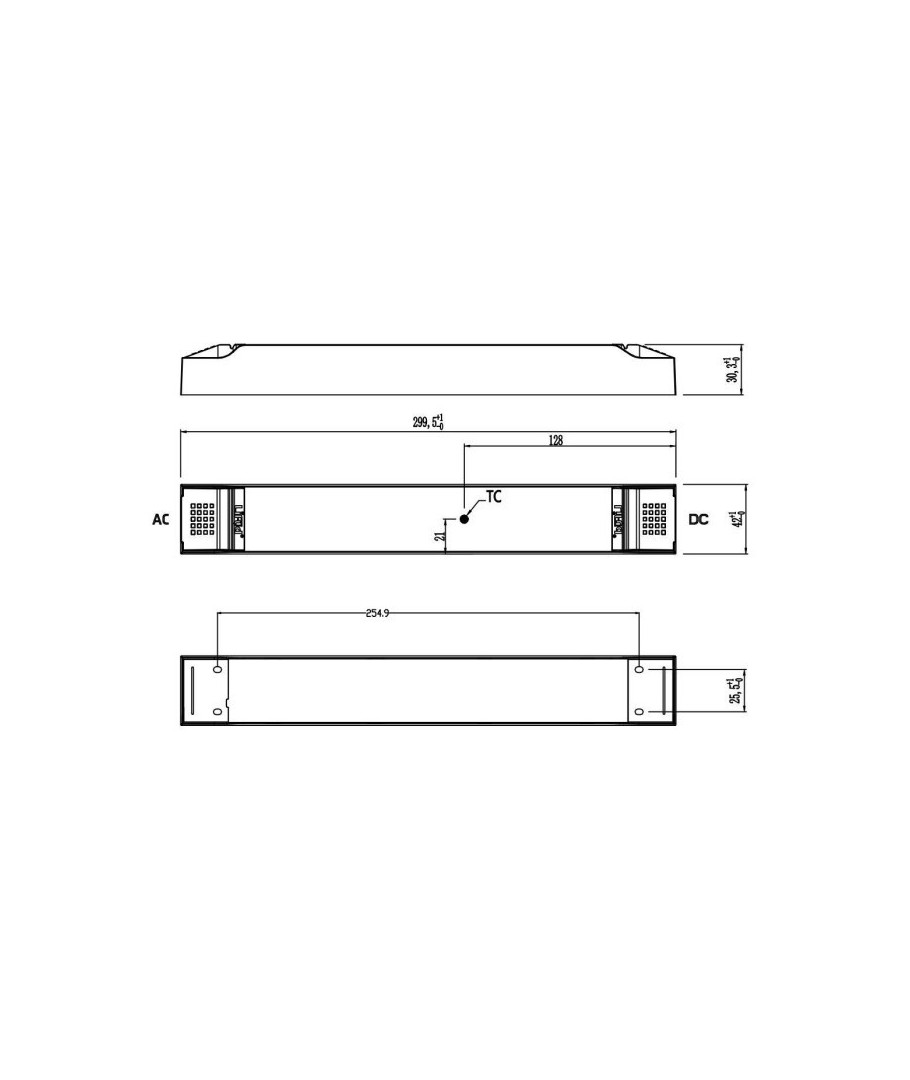 Met afmetingen van 300 x 30 x 42 mm is deze voeding compact en gemakkelijk te integreren in verschillende installaties zonder concessies te doen aan prestaties of efficiëntie. Het ontwerp maakt het een praktische keuze voor zowel professionele installateurs als doe-het-zelvers.