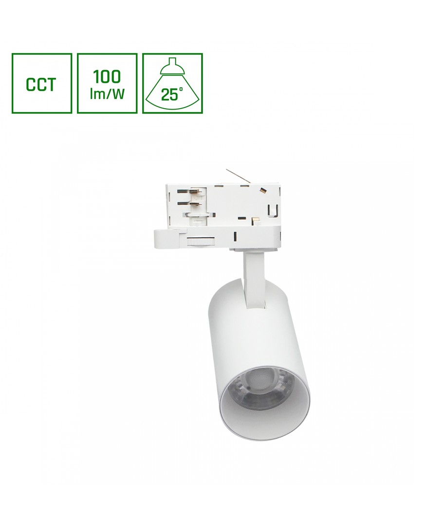 Met een vermogen van 8W en aansluiting op 230V voeding is deze railspot zowel energiezuinig als eenvoudig te installeren. De lichtsterkte bereikt 600 lumen, wat zorgt voor een sterk en gefocust licht dat zich verspreidt over 25 graden. Dit ontwerp garandeert een gecontroleerde en precieze lichtspreiding die zowel aan praktische als esthetische behoeften voldoet.