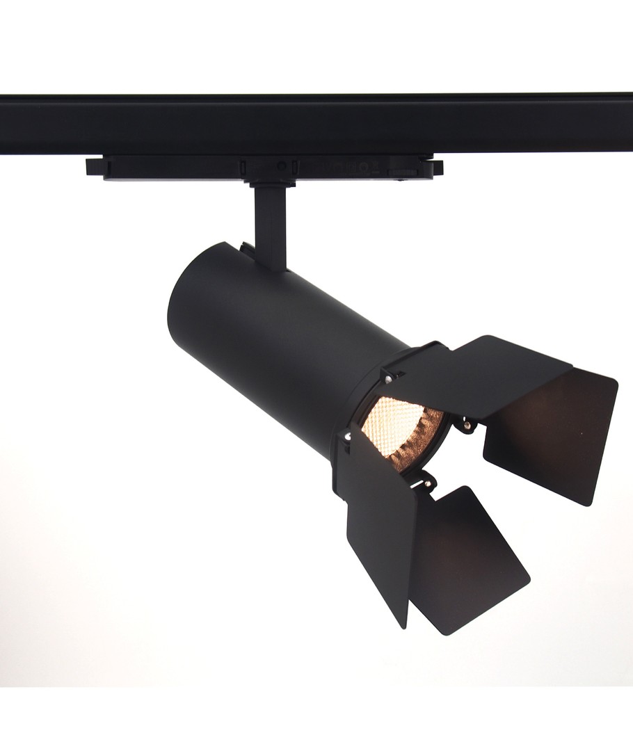 Voor professionele verlichting gelden hoge eisen - Deze 30W 3-fase tracklight is dimbaar via DALI-besturing en wordt compleet geleverd met barndoors voor een nauwkeurige regeling van het licht.