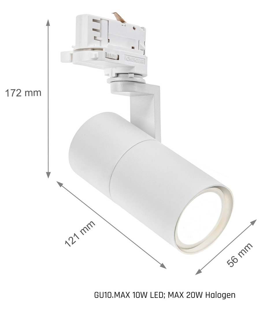 Deze elegante witte railsspot met GU10-fitting geeft je de mogelijkheid zelf te kiezen welk licht je wilt. Je kunt kiezen uit de vele verschillende GU10 spots en deze in de lamp plaatsen.