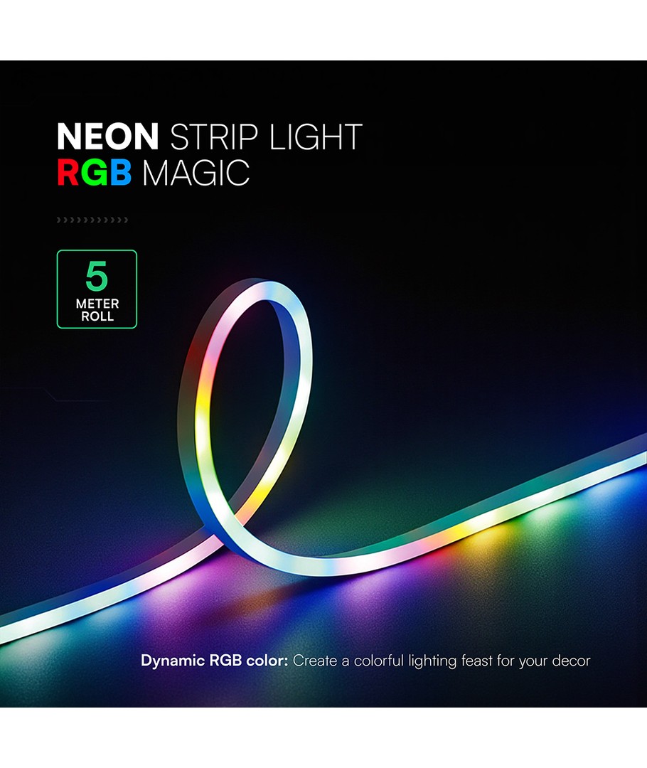 Beleef een kleurrijke verlichtingservaring met onze 5m RGBIC Neon Flex LED set, die flexibele en dynamische verlichting biedt voor elke ruimte via een USB-aansluiting.