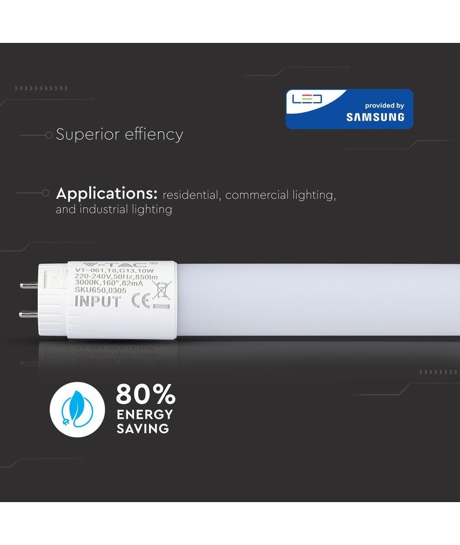 Met een lichtsterkte van 850 lumen en een straalhoek van 160 graden zorgt deze LED-buis voor een gelijkmatige en brede lichtverdeling. De hoge lichtkwaliteit met een RA-waarde van 80-85 zorgt ervoor dat kleuren natuurlijk en echt overkomen, perfect om aan de meeste verlichtingsbehoeften te voldoen.