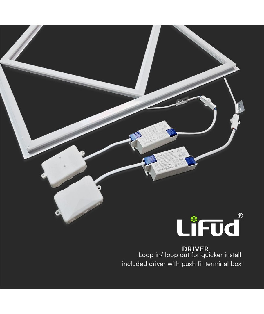 Aangezien het paneel 2 drivers heeft, kunt u het midden en de rand afzonderlijk bedienen, zowel aan/uit als door het aanschaffen van dimbare drivers.
