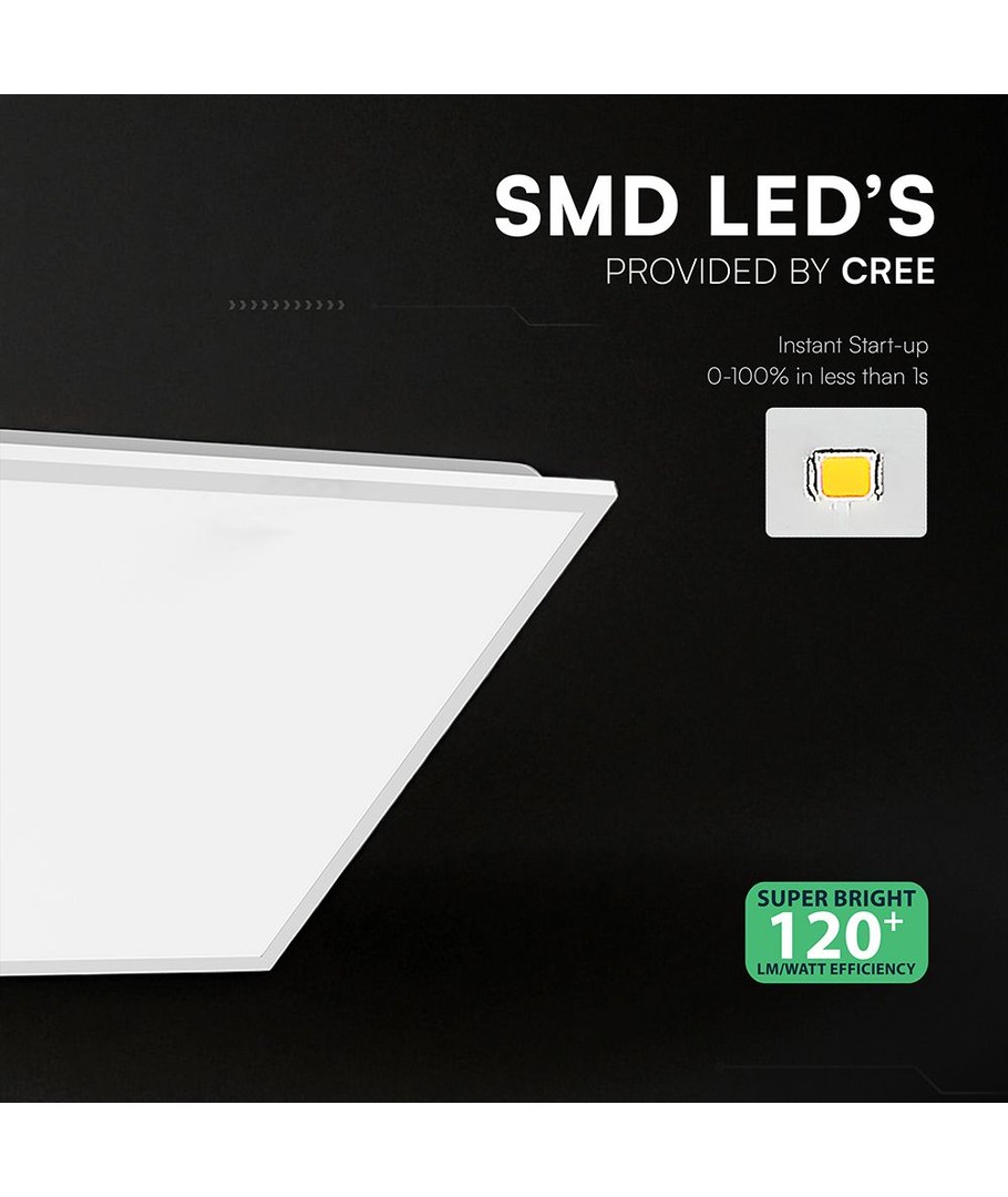 Efficiënt en betrouwbaar backlit 60x60 LED paneel met CREE LED chip, dat krachtig en gelijkmatig licht levert voor zowel zakelijk als particulier gebruik. Met een hoge lichtopbrengst van 120 lm/W krijgt u maximale verlichting met een minimaal stroomverbruik. Een stijlvol paneel dat perfect past in moderne plafondoplossingen.