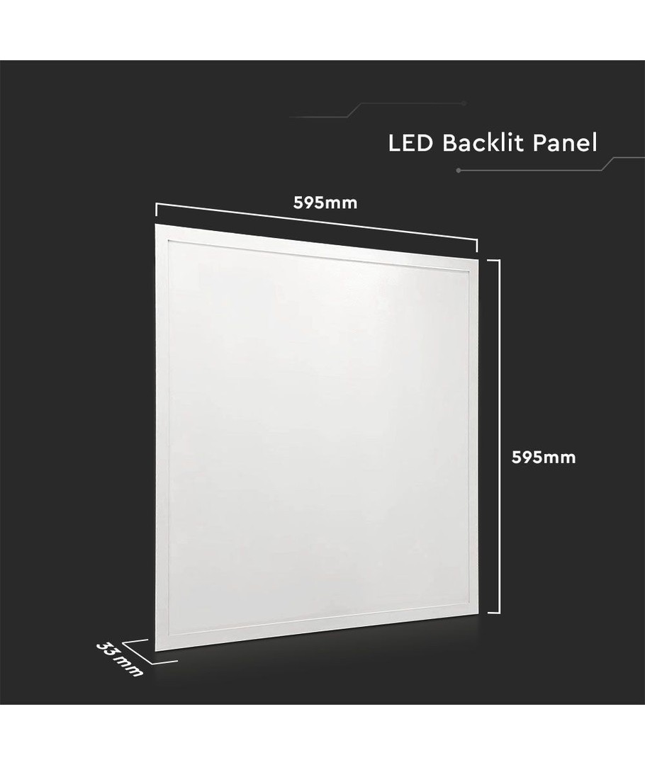 Het paneel heeft de afmetingen 595 x 33 x 595 mm en is uitgerust met een geïntegreerde lichtbron. Let op dat het een IP20-classificatie heeft en daarom niet waterbestendig is.