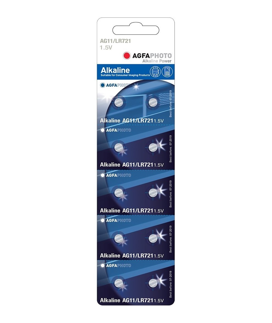 10 stuks LR721/AG11 knoopcelbatterijen van AgfaPhoto.Wordt gebruikt voor onder andere horloges, klein speelgoed, enz.
