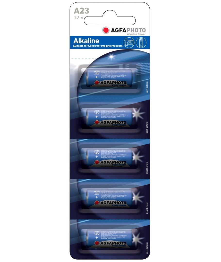 5 stuks LR23A/A23 batterij van AgfaPhoto.Aanduidingen: LR23A, LR23, MN21, 23AEWordt gebruikt voor onder andere centrale vergrendeling van auto's en garagepoortopeners enz.