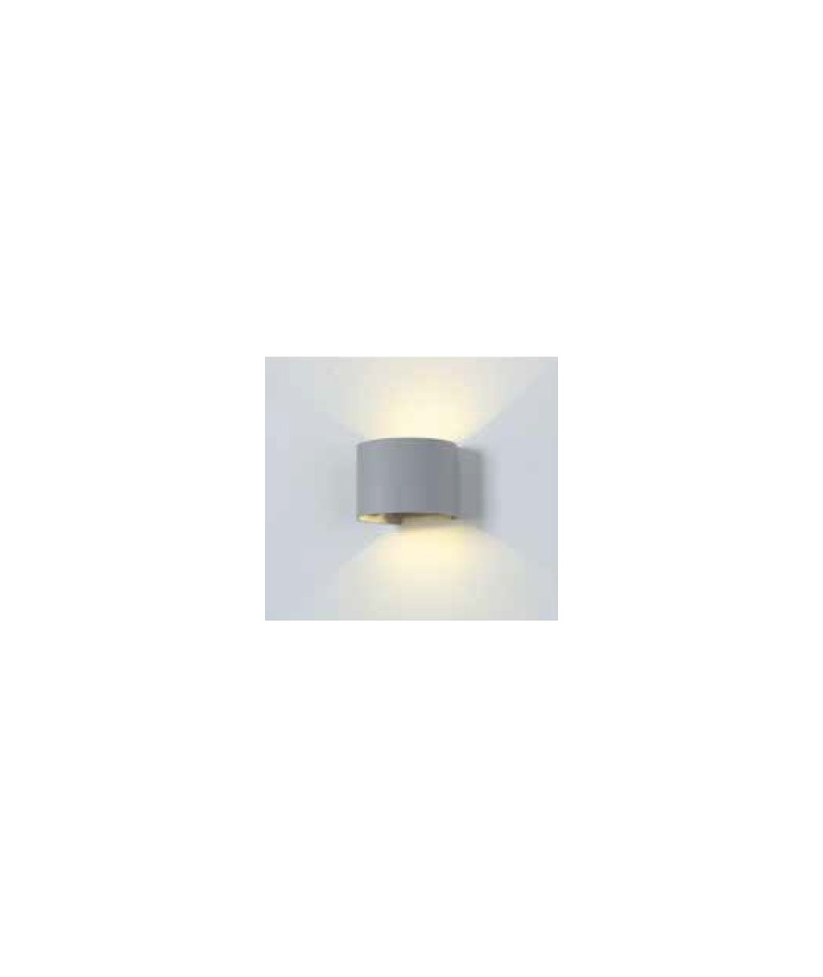 Super slimme grijze wandlamp, die een zeer mooi licht boven en onder de lamp zelf geeft.