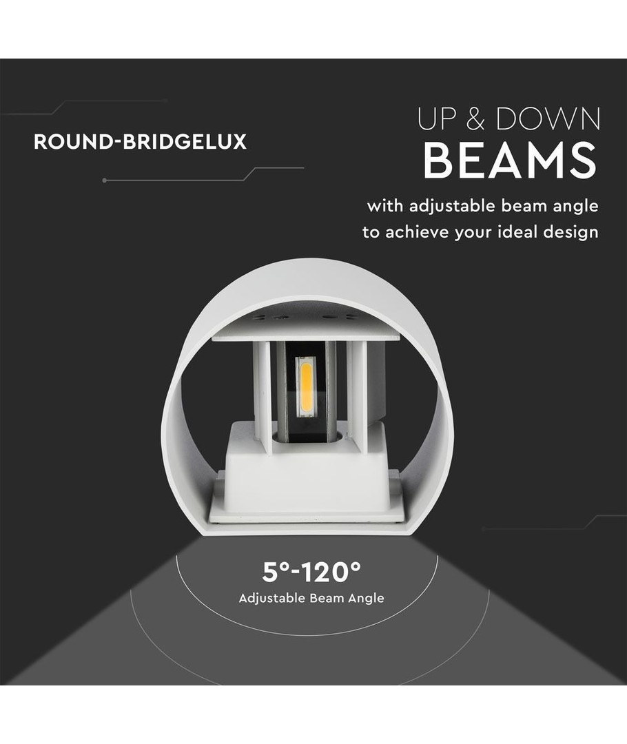 Het is mogelijk om de lichtspreiding zowel boven als onder aan te passen, van 10-120 graden.