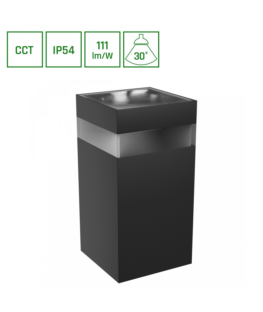 Het elegante, vierkante ontwerp van de lamp in zwart geeft een moderne en tijdloze uitstraling die bij elke buiteninrichting past. Tegelijkertijd zorgt de IP54 classificatie ervoor dat de lamp bestand is tegen vochtige lucht en waterdruppels, wat hem zeer duurzaam maakt voor buitengebruik.