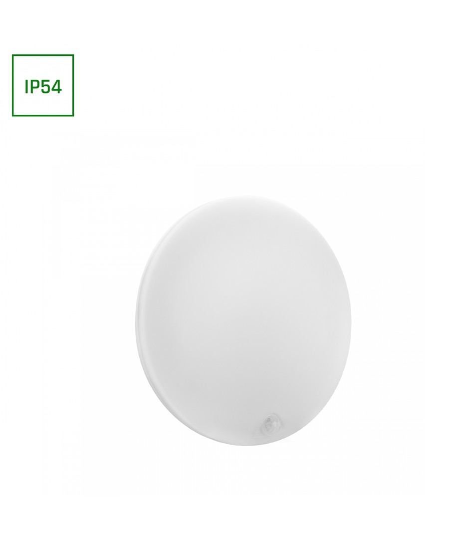 Met afmetingen van Ø300 x 60 mm en een IP54 classificatie is de lamp ontworpen om vochtige lucht en spatwater aan de voorkant te weerstaan, waardoor hij geschikt is voor diverse ruimtes in woningen en bedrijfsruimten.