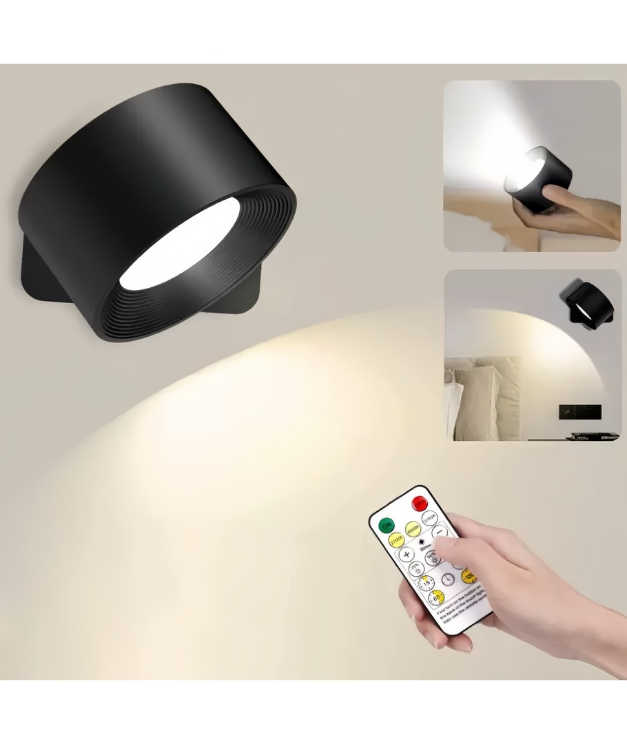4,5W Oplaadbare wandlamp CCT - IP20, rond, mat zwart, 360° draaibaar, incl. lichtbron en afstandsbediening Uitklappen