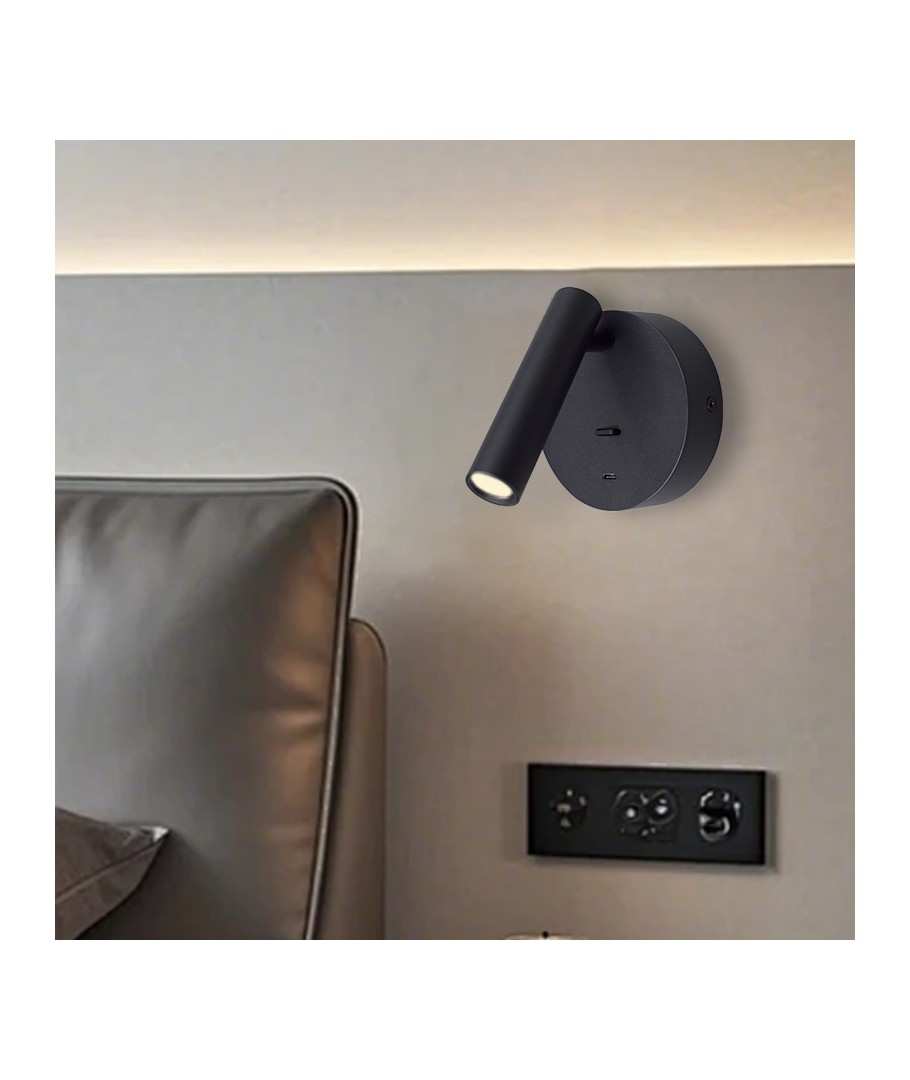 Leeslamp in zwarte kleur voor wandmontage.