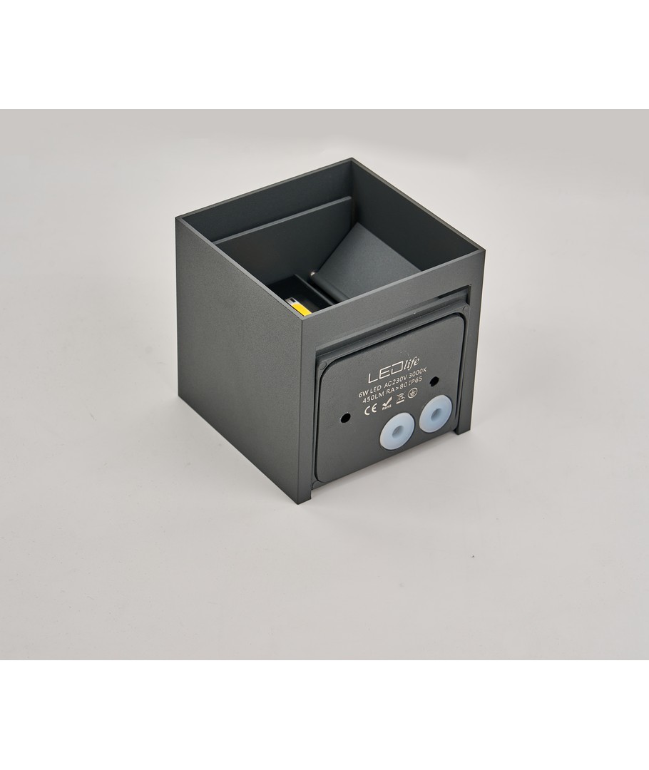 Deze grijze up/down wandlamp van het Deense LEDlife is ontworpen met de focus op esthetiek en kwaliteit. De wandlamp heeft een verstelbare stralingshoek (10-120 graden) aan zowel de boven- als onderkant. Deze functie is zeer populair omdat het de uitstraling van het gebouw verhoogt en een moderne en elegante look geeft. De lamp is waterdicht en kan daarom zowel binnen als buiten worden gebruikt.
