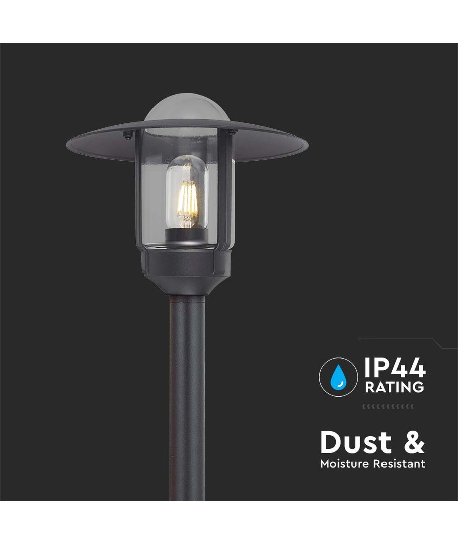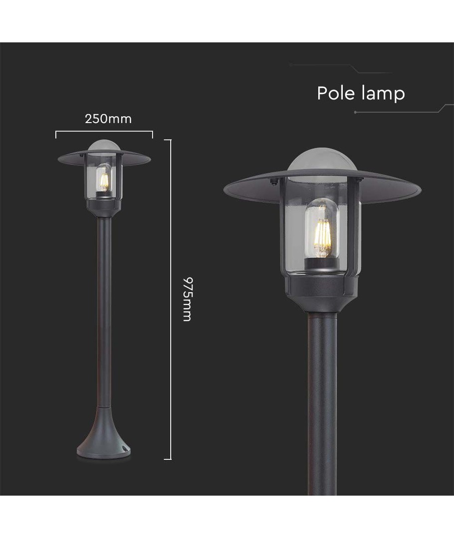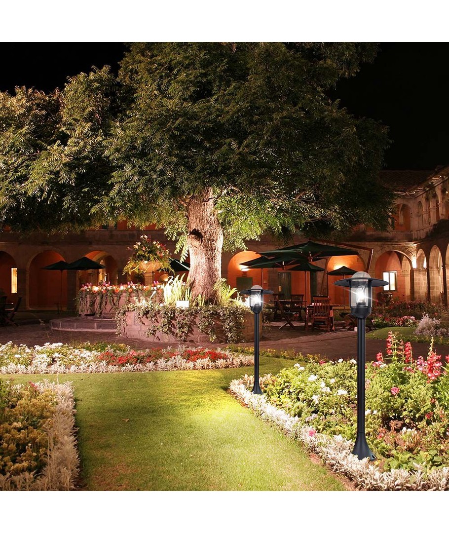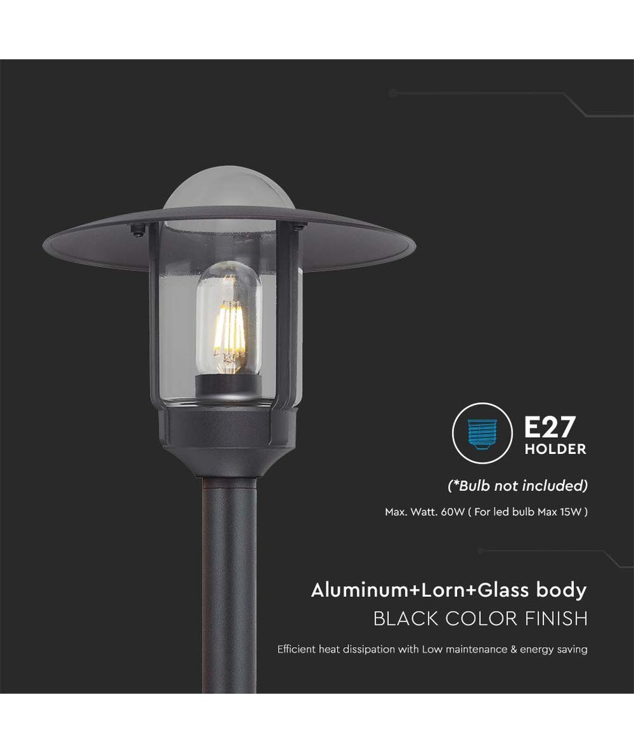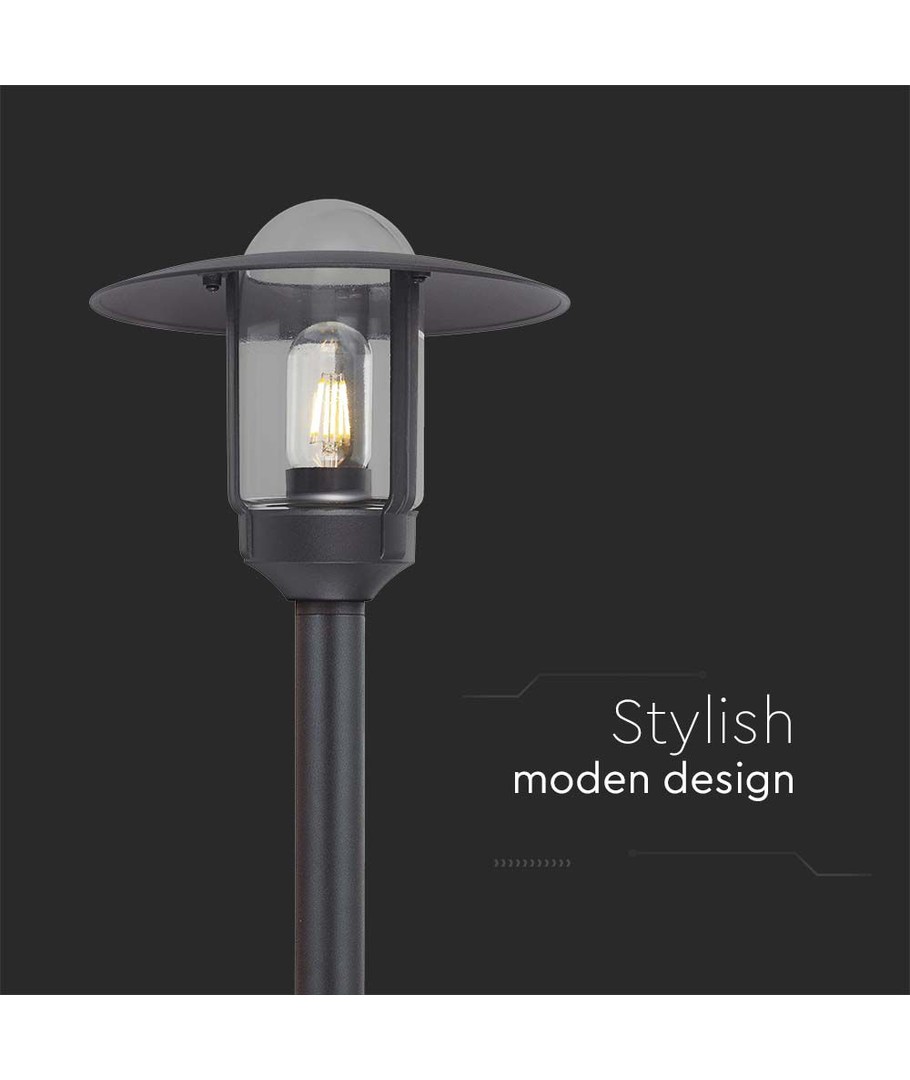 Geef uw buitenruimte een moderne uitstraling met deze stijlvolle paalverlichting. Het ontwerp van de lamp combineert helder glas met een mat zwart huis, waardoor het een aantrekkelijk element is in elke tuin- of terrasinrichting.