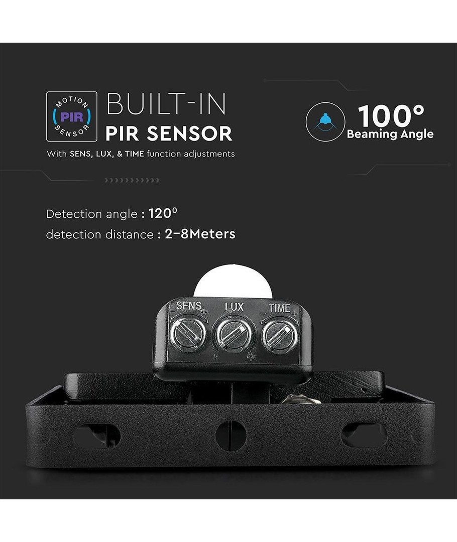 Het ontwerp van de schijnwerper maakt hem robuust en geschikt voor buitengebruik dankzij een IP65-classificatie, wat betekent dat hij beschermd is tegen waterstralen en regen. Met een compacte afmeting van 185 x 211 x 50 mm is de schijnwerper gemakkelijk te installeren en te integreren in verschillende omgevingen.