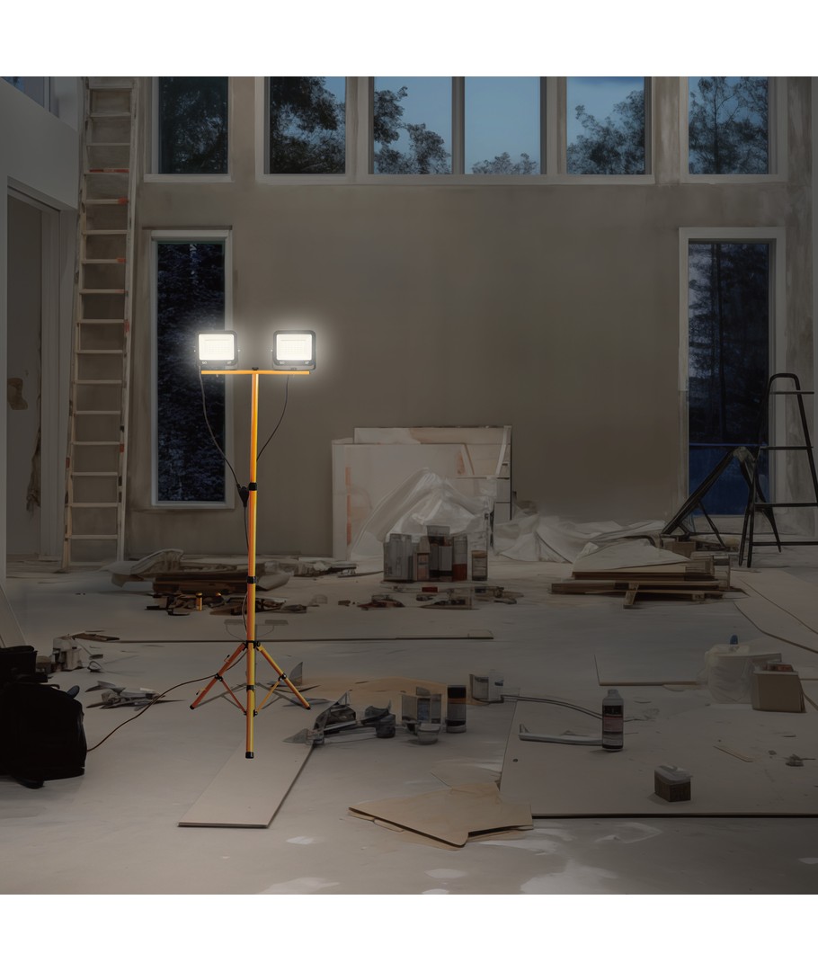 Met een lichtsterkte van maar liefst 8300 lumen en een indrukwekkende spreidingshoek van 110° zorgt dit statief voor een gelijkmatige en brede lichtverdeling, wat het ideaal maakt voor zowel werkplekken als buitenprojecten. De neutrale witte lichtkleur garandeert een natuurlijke verlichting zonder storende blauwe of gele tinten.