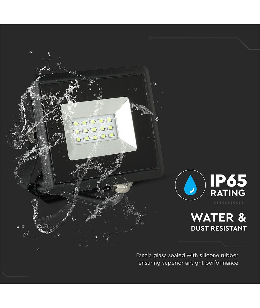 Het product heeft een IP65 classificatie, wat betekent dat het speciaal ontworpen is voor buitengebruik. De schijnwerper is bestand tegen waterdruppels en regen, wat zorgt voor betrouwbare prestaties onder verschillende weersomstandigheden.