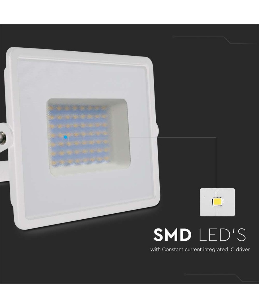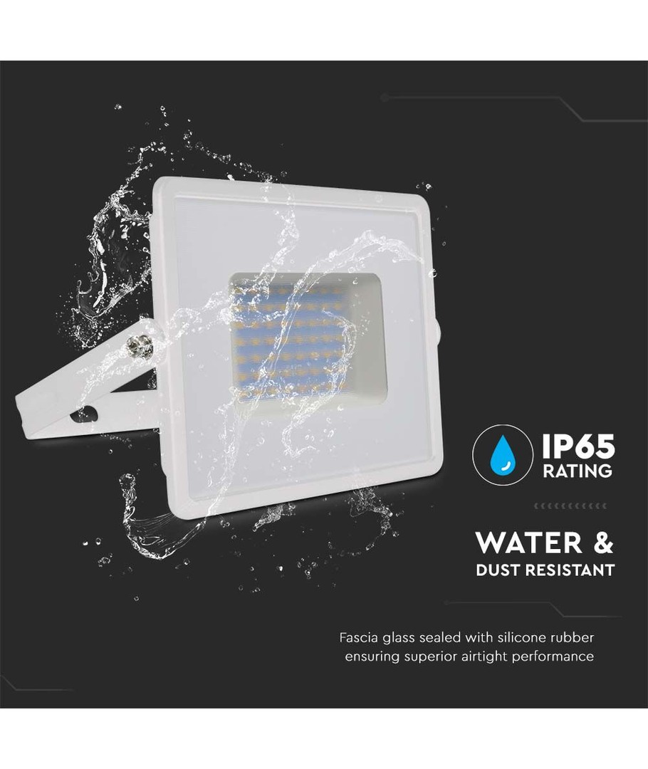 Uitgerust met een stijlvol wit behuizing, past deze schijnwerper gemakkelijk in elke omgeving. Met een kleurtemperatuur van 6500K geeft hij een koud licht met een duidelijke blauwachtige gloed, wat perfect is voor gespecialiseerde toepassingen zoals spuitcabines, aquaria en decoratieve doeleinden.