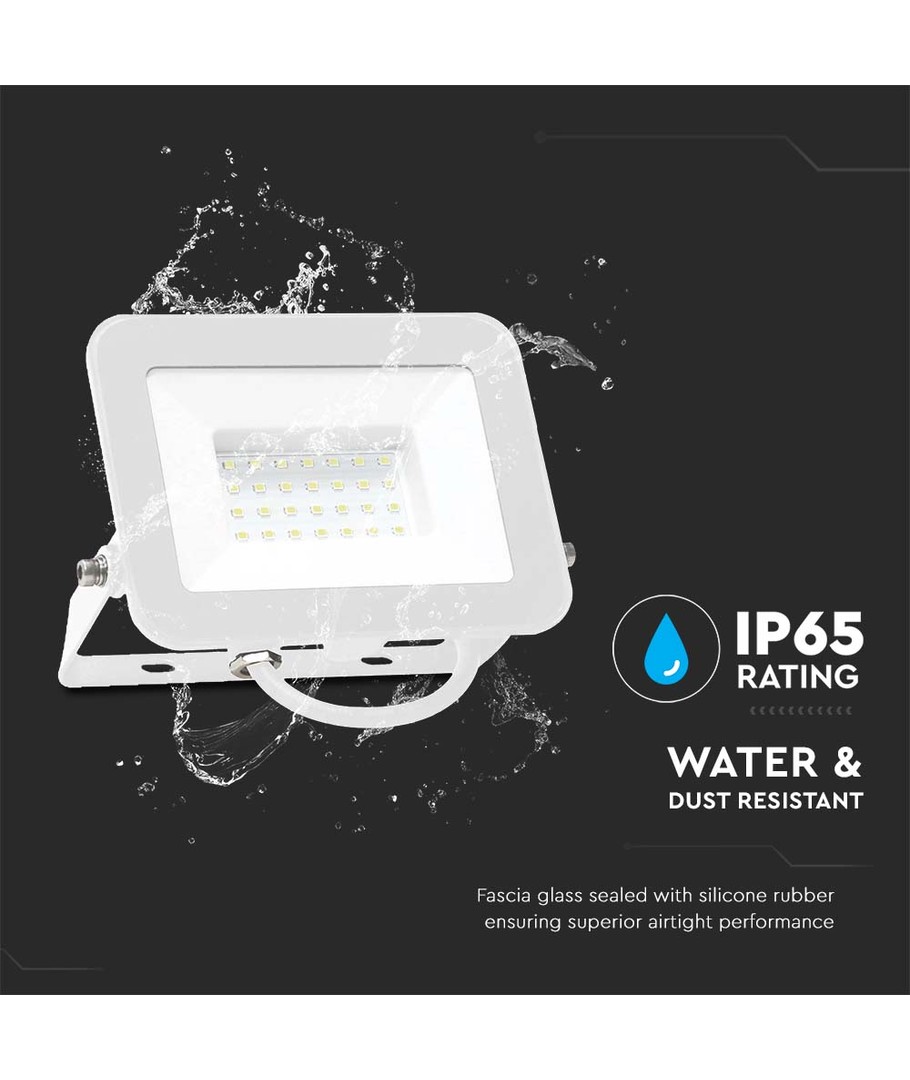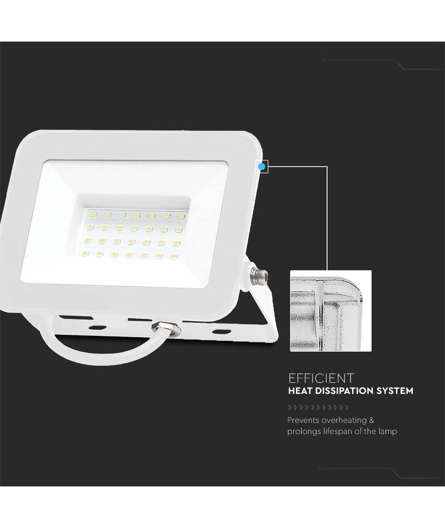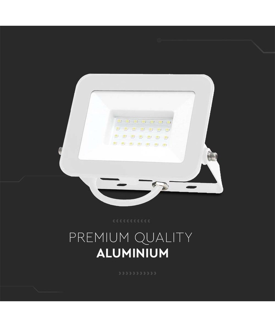 Uitgerust met een Samsung LED-chip, garandeert deze schijnwerper langdurige prestaties en wordt geleverd met 5 jaar fabrieksgarantie, wat uw investering beschermt. Het licht heeft een koudwitte kleurtemperatuur van 6500K, die een karakteristieke blauwachtige gloed geeft, perfect voor specifieke toepassingen zoals spuitcabines, aquaria of speciale decoraties.
