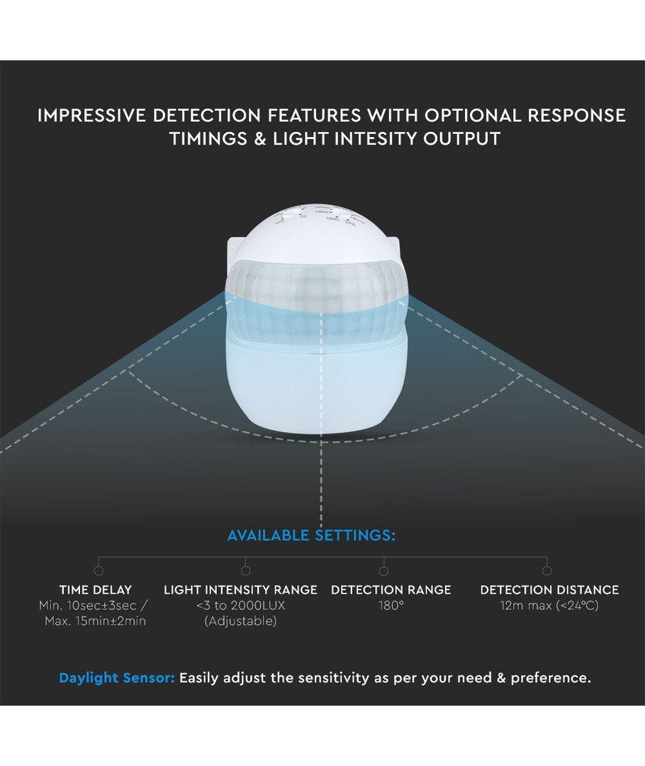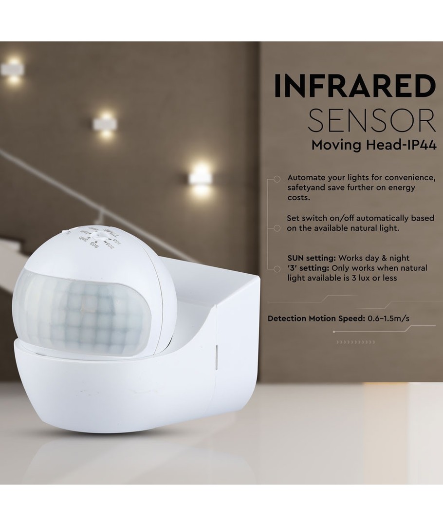 Ontdek de veelzijdige V-Tac bewegingssensor met beweegbaar hoofd, ideaal voor LED-verlichting buiten en ontworpen om betrouwbare detectie en veiligheid te bieden.