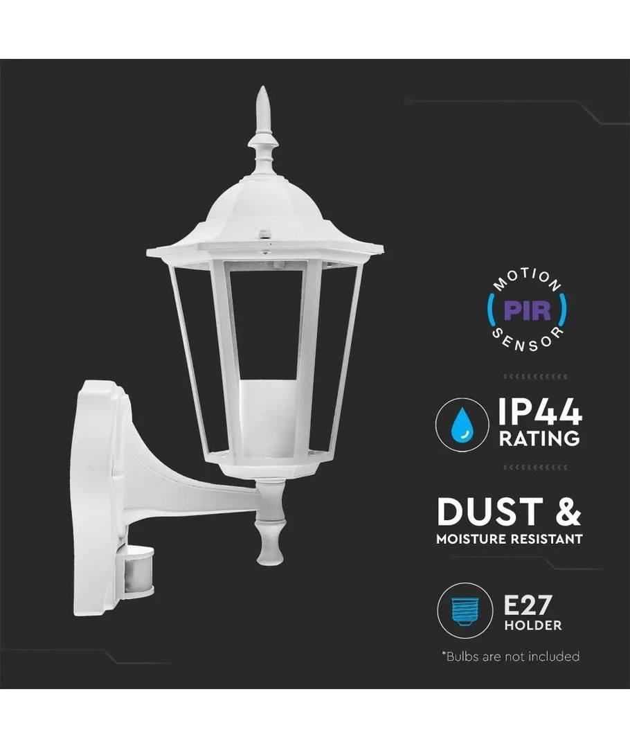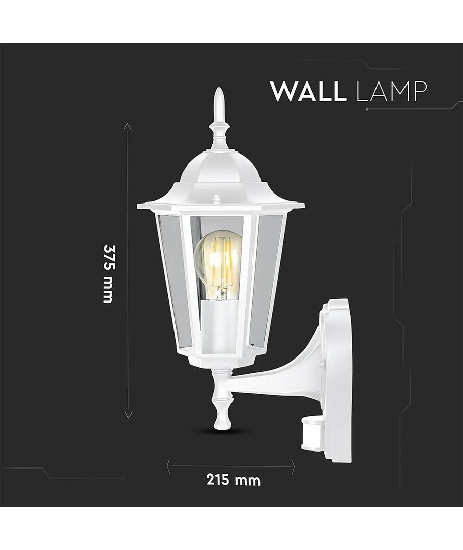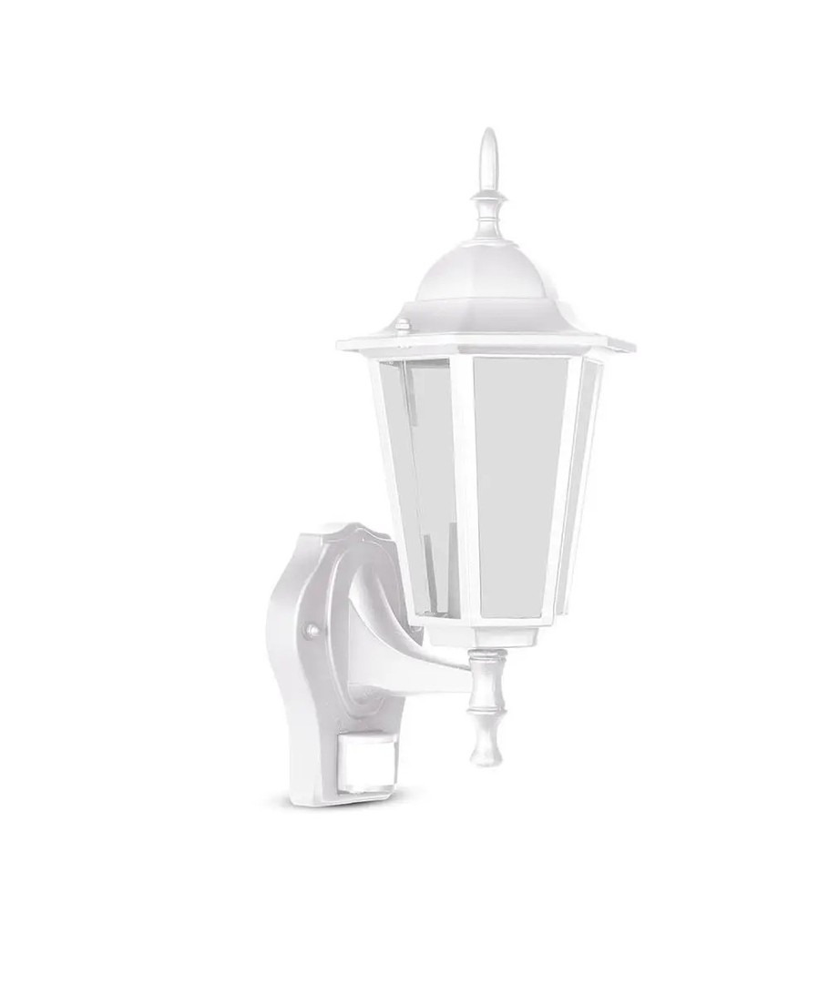 Klassieke witte wandlamp met ingebouwde sensor.