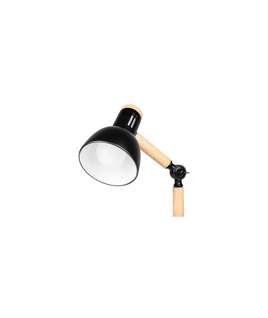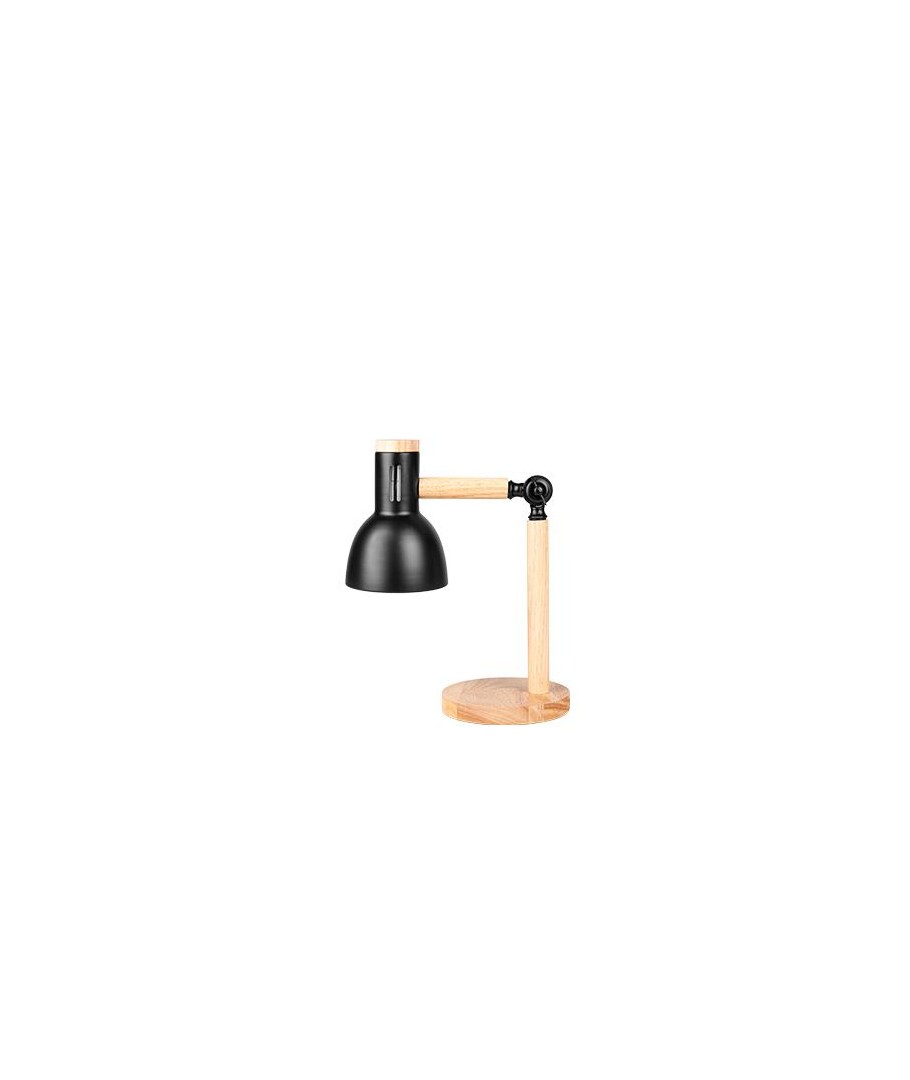 Breng een stijlvolle en functionele lichtontwerp in uw huis met deze unieke tafellamp, die zwart metaal en hout combineert voor een elegante uitstraling. Deze veelzijdige lamp voegt een moderne en natuurlijke esthetiek toe aan elk interieur.