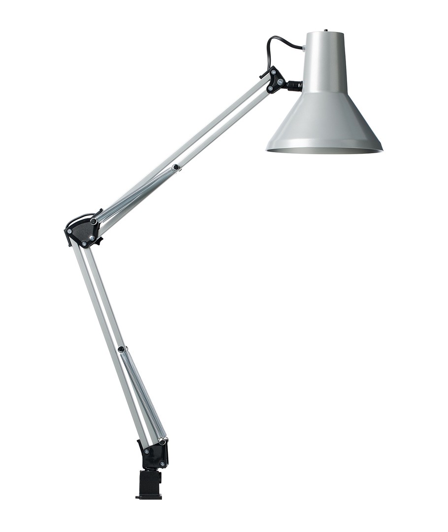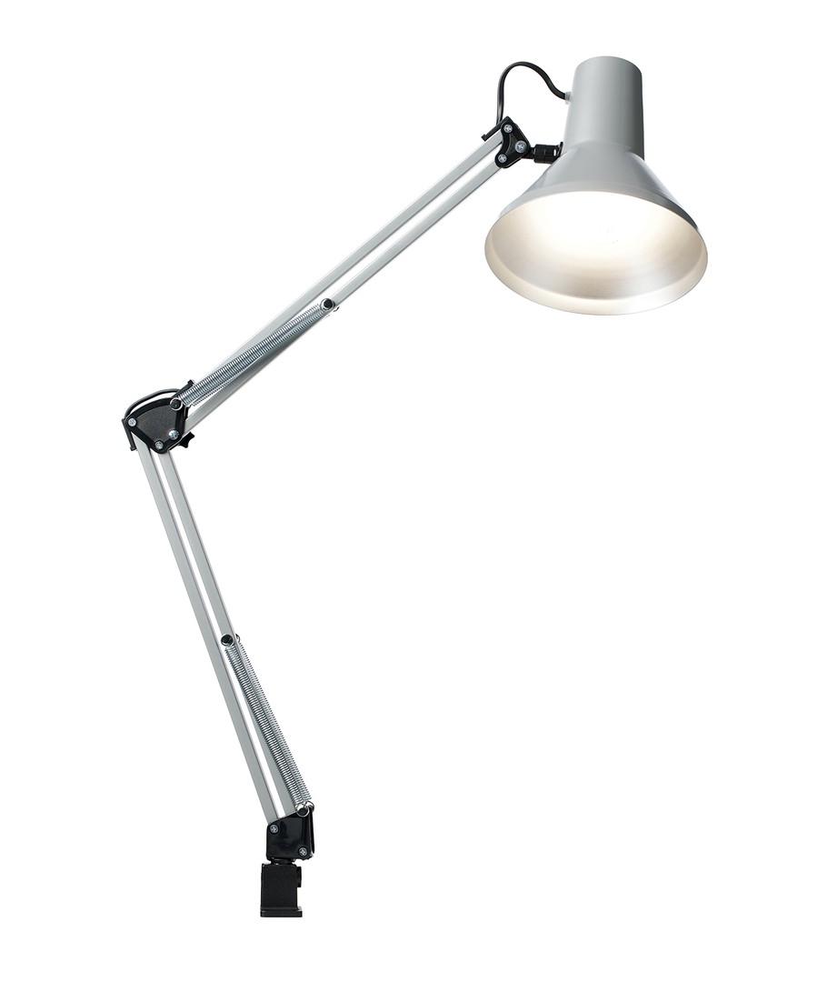 Jensen architectenlamp in Silver van Nielsen Light is de originele, klassieke architectenlamp met 4 krachtige veren en een kop uit één stuk metaal. De lamp wordt geleverd inclusief bureauklem en muurbevestiging, zodat deze eenvoudig op het bureau of aan de muur te monteren is.