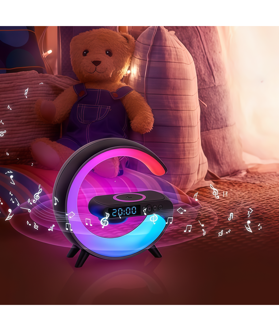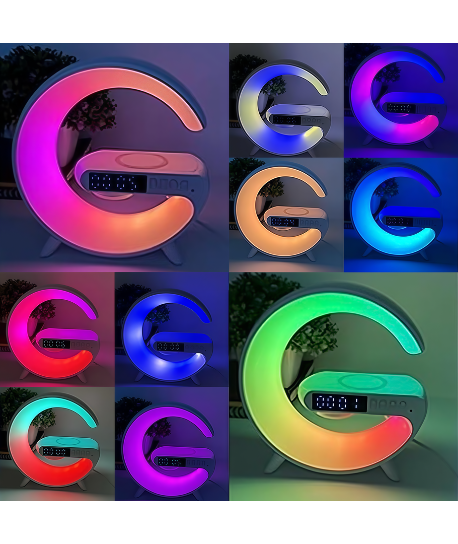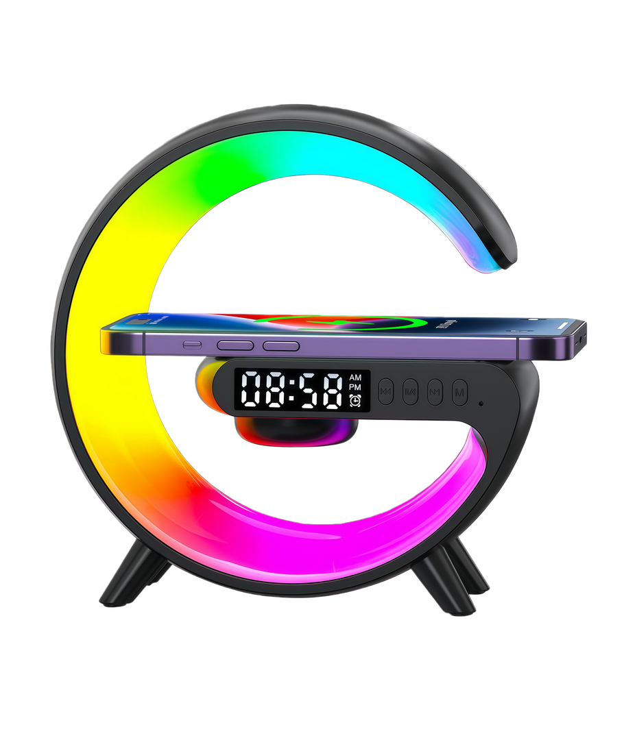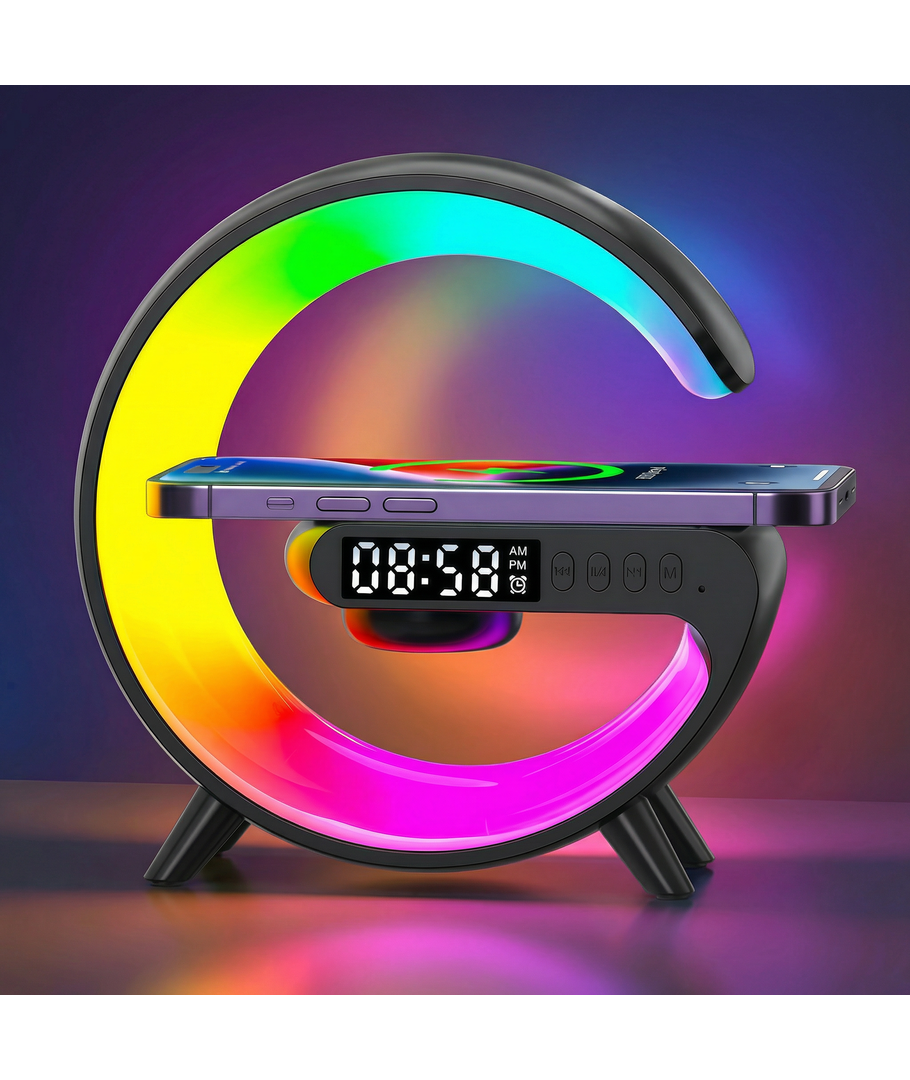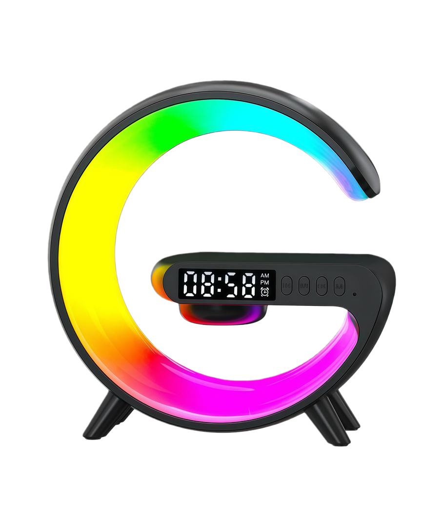 Kleine G-vormige RGBIC lamp - Draadloze oplader, 14,5x14cm, Zwart, Bluetooth, 5V USB Uitklappen