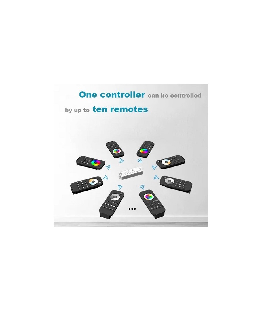 Bedien 12V, 24V, 230V & dimmen, CCT, RGB – alles met dezelfde afstandsbediening.