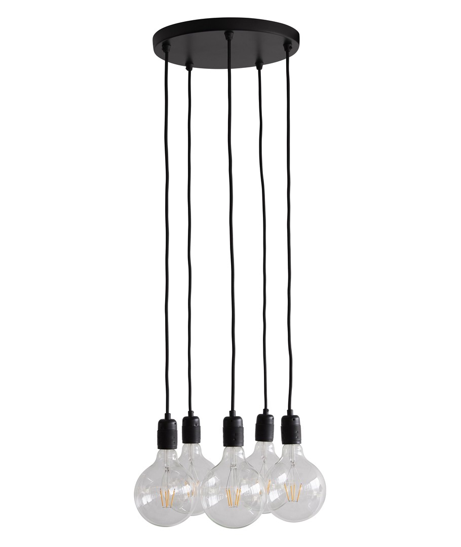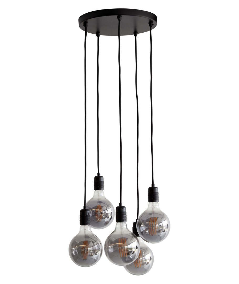 Sier uw huis met een cluster van 5 lampen naar keuze met deze hanglamp van Nielsen Light, met 5 stuks E27 fittingen in het zwart.