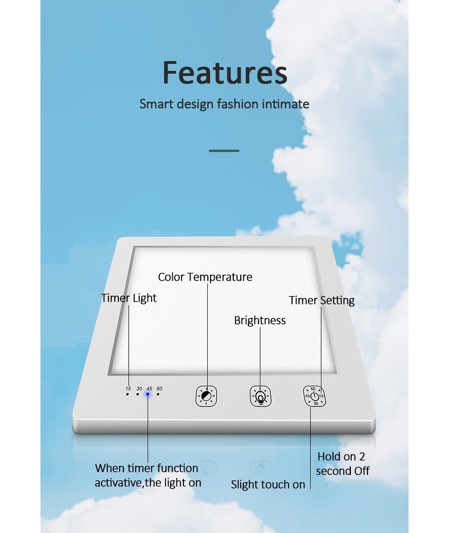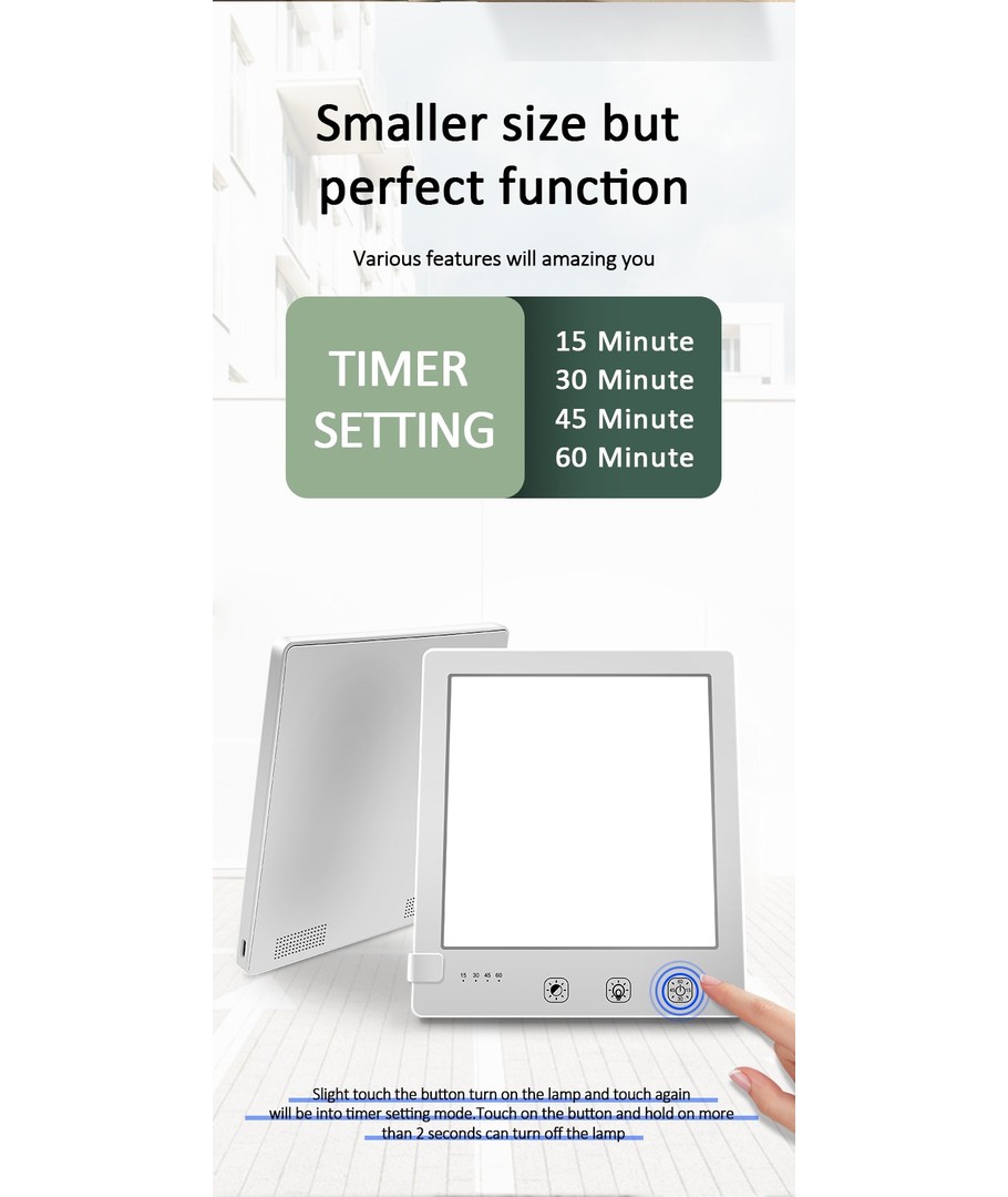 Verbeter je dagelijkse routine met onze LED lichttherapielamp, ontworpen om je een energieboost te geven op donkere dagen. Met een handige timer-functie kun je je lichtschema aanpassen aan je persoonlijke behoeften, zodat je precies de hoeveelheid licht krijgt die je nodig hebt.