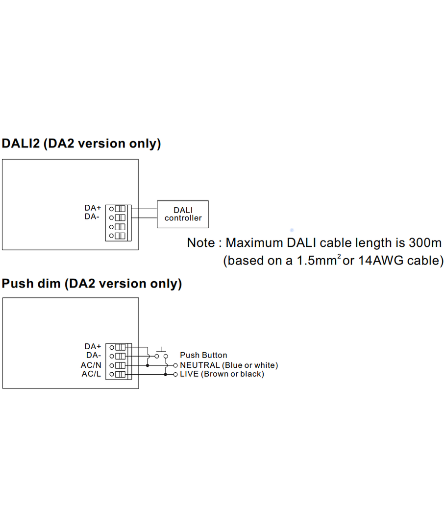 Maakt LED-panelen dimbaar via DALI-interface of push dim/veerdruk.
