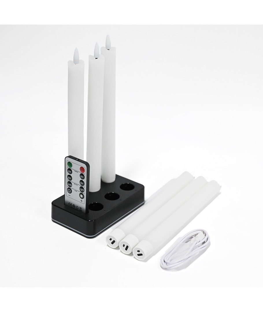 Beleef de gezellige sfeer van kaarslicht zonder het risico van open vuur met onze 6-pack witte LED-kaarsen met vlameffect. Deze elegante dinerkaarsen passen perfect in uw standaard kandelaars en bieden een ontspannende verlichting in elke kamer.