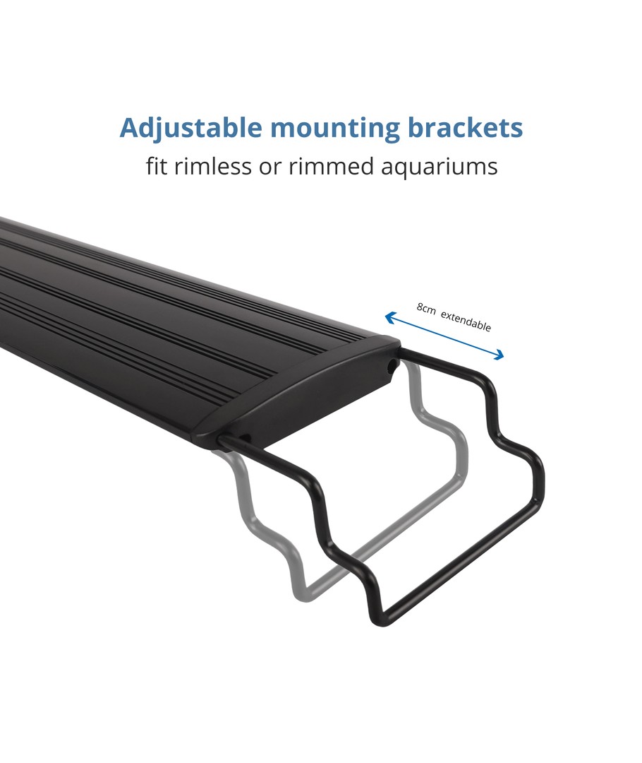 Deze armatuur is eenvoudig te installeren en kan worden aangepast voor aquaria tussen 26 cm en 50 cm. Het integreert naadloos met uw aquarium en biedt grote flexibiliteit in plaatsing en gebruik.