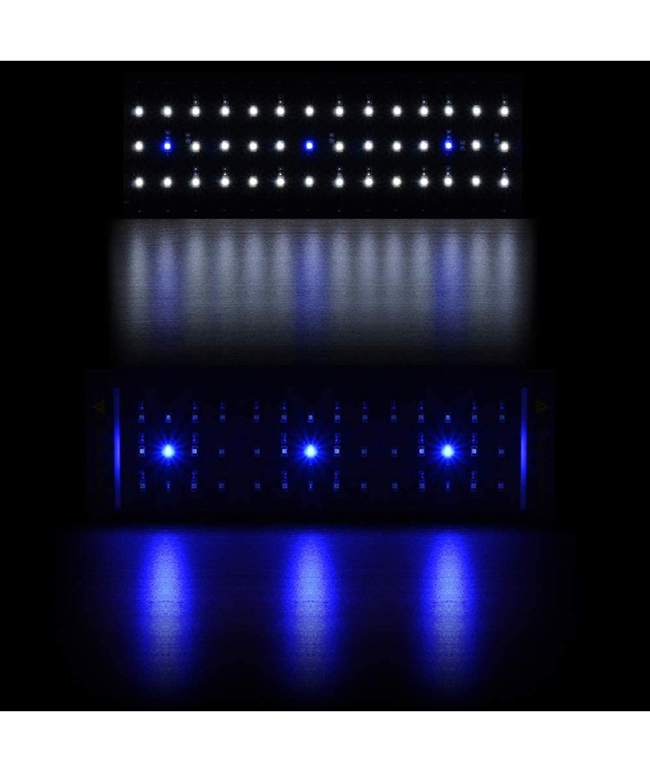 Dit verstelbare aquariumarmatuur biedt geavanceerde verlichting voor uw aquarium, dankzij het 11W LED systeem, dat wit en blauw licht combineert om een optimale visuele omgeving te creëren en de groei van de organismen in het aquarium te bevorderen.