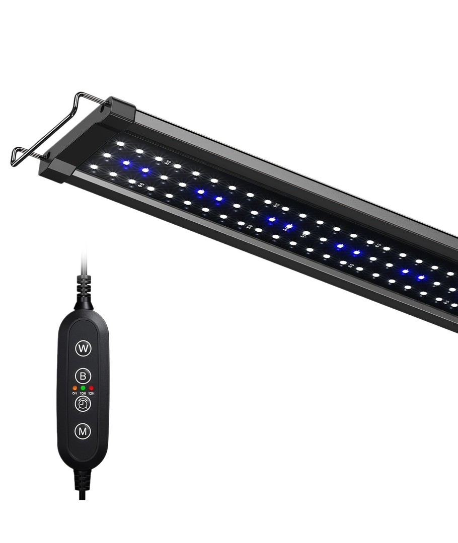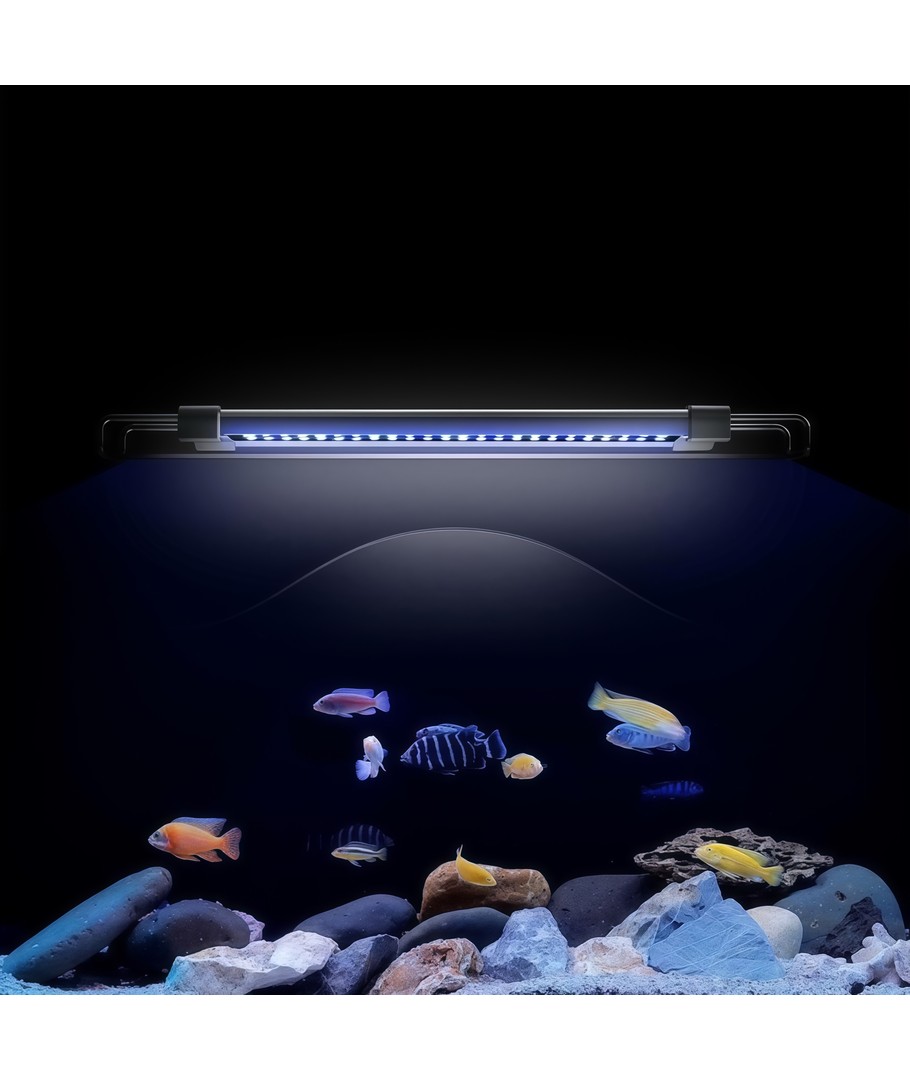 Uitgerust met een 18W LED lichtbron levert deze armatuur een krachtige lichtsterkte van 1440 lumen. Het witte en blauwe licht creëert een natuurlijke verlichting die de plantengroei bevordert en ervoor zorgt dat je vissen er op hun best uitzien. Met een stralingshoek van 120 graden kun je erop vertrouwen dat het licht gelijkmatig over het hele aquarium wordt verdeeld.