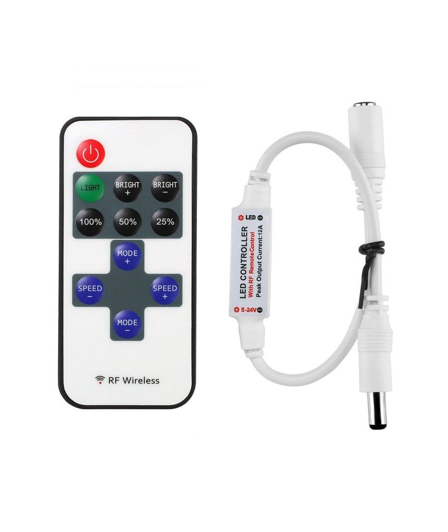 Kan 12V/24V enkelkleurige LED strips dimmen.