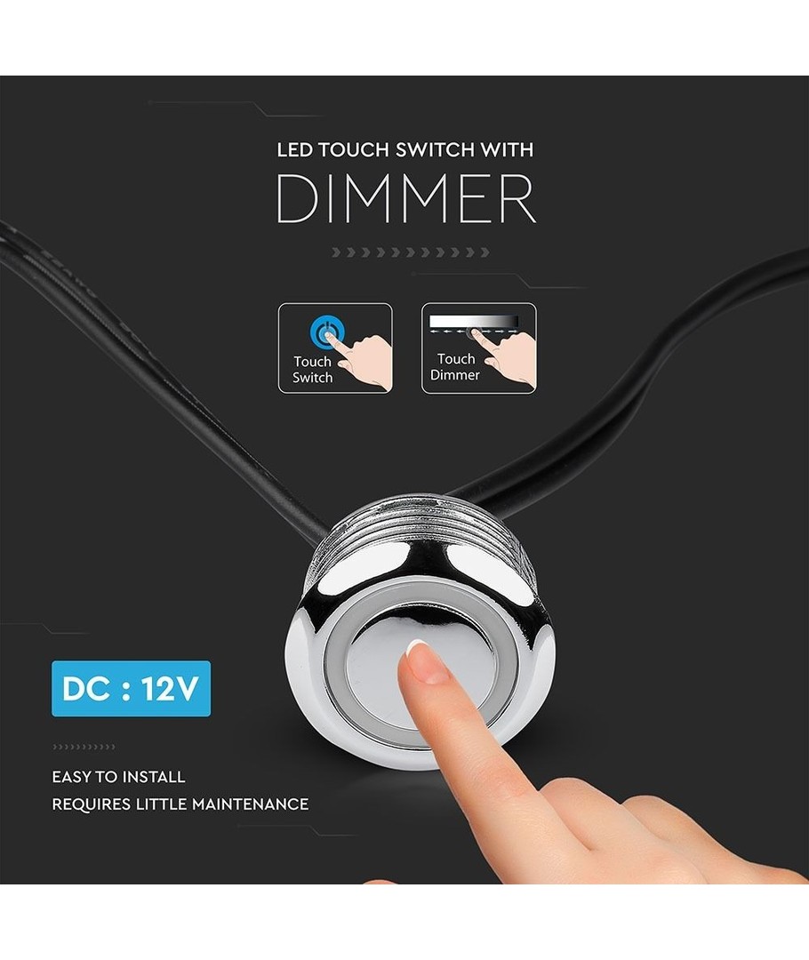 Wordt aan- en uitgezet met een korte druk op de touchknop, en gedimd bij een langere druk.